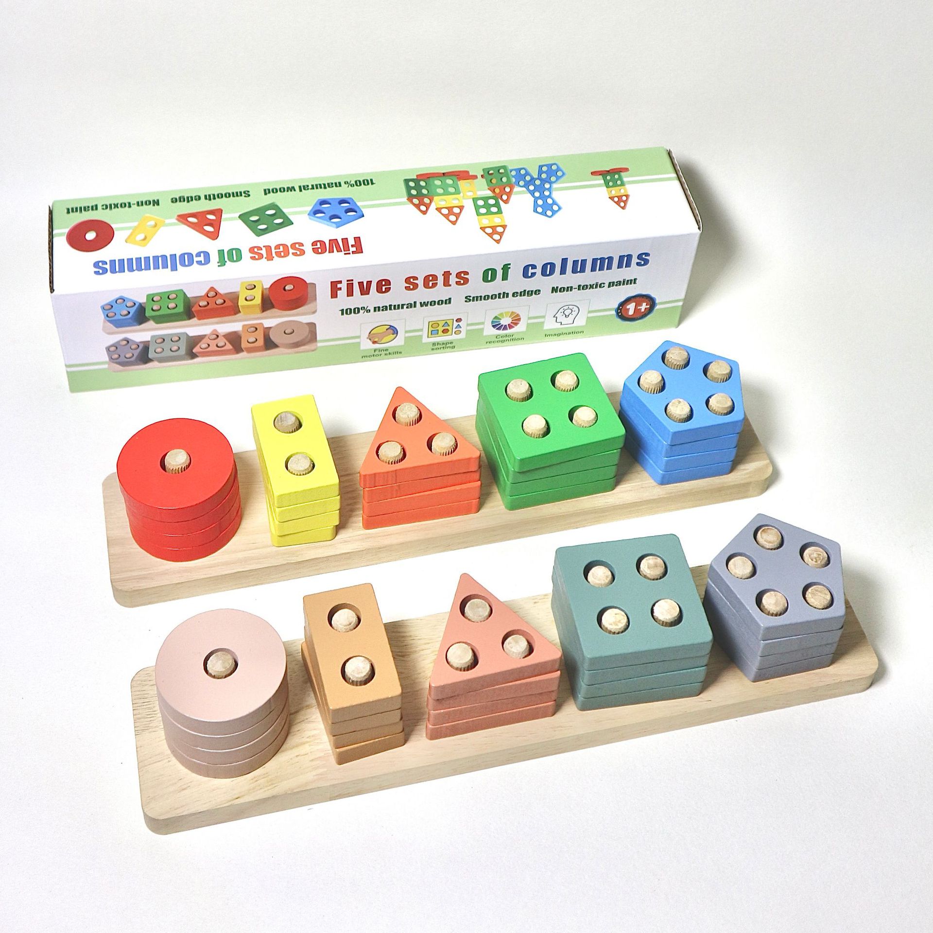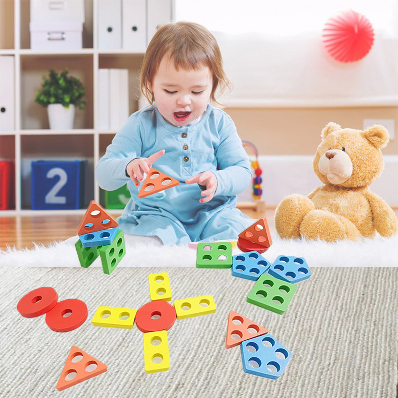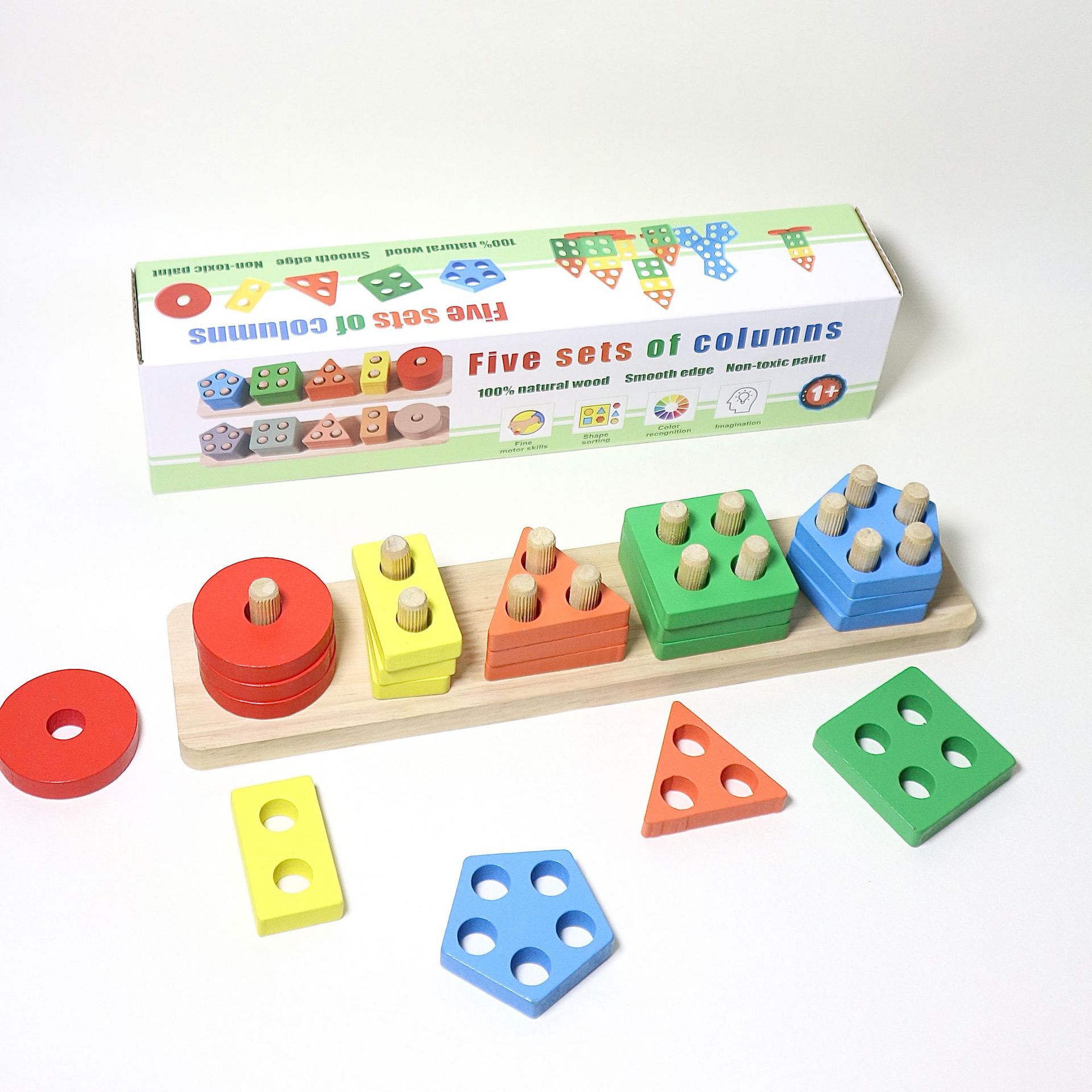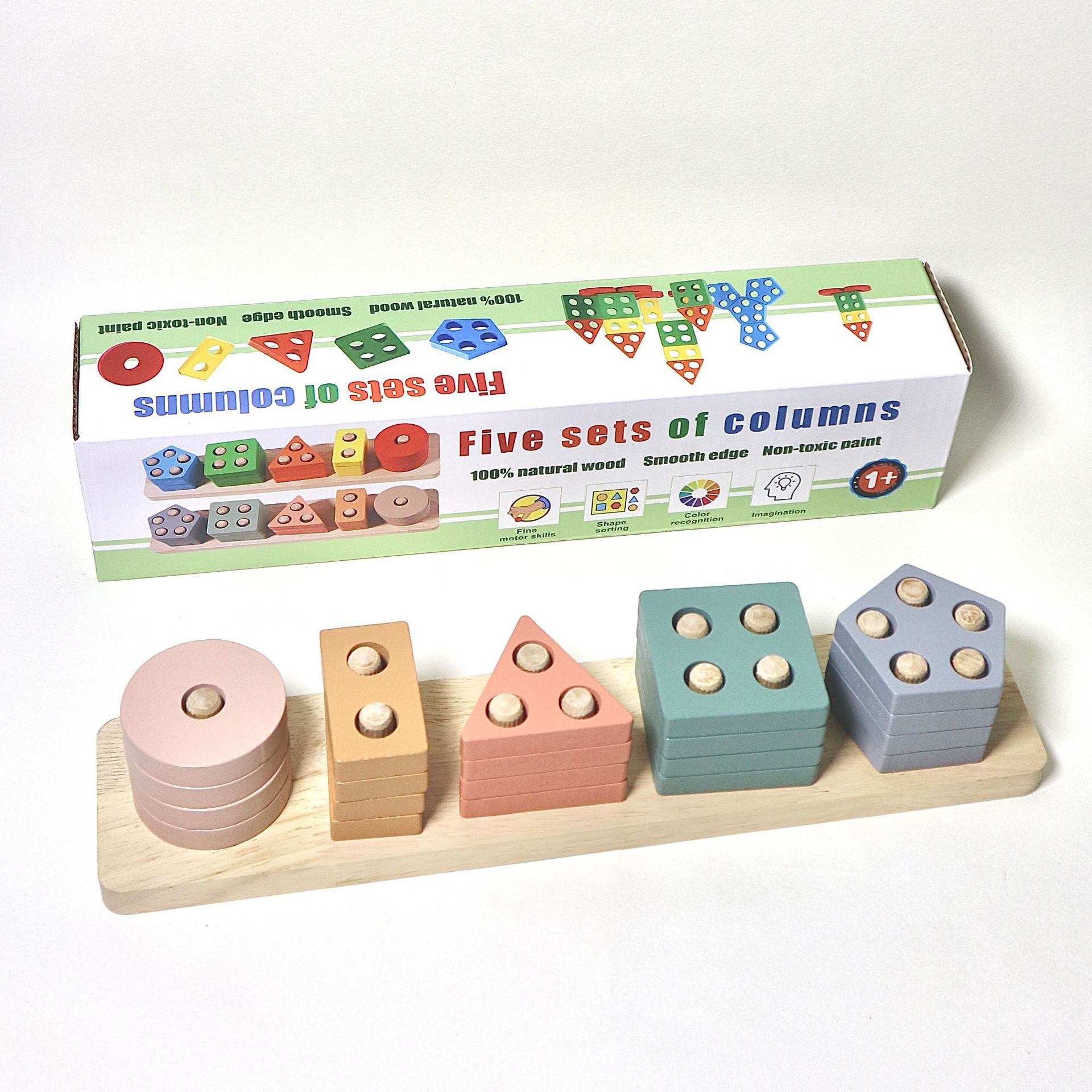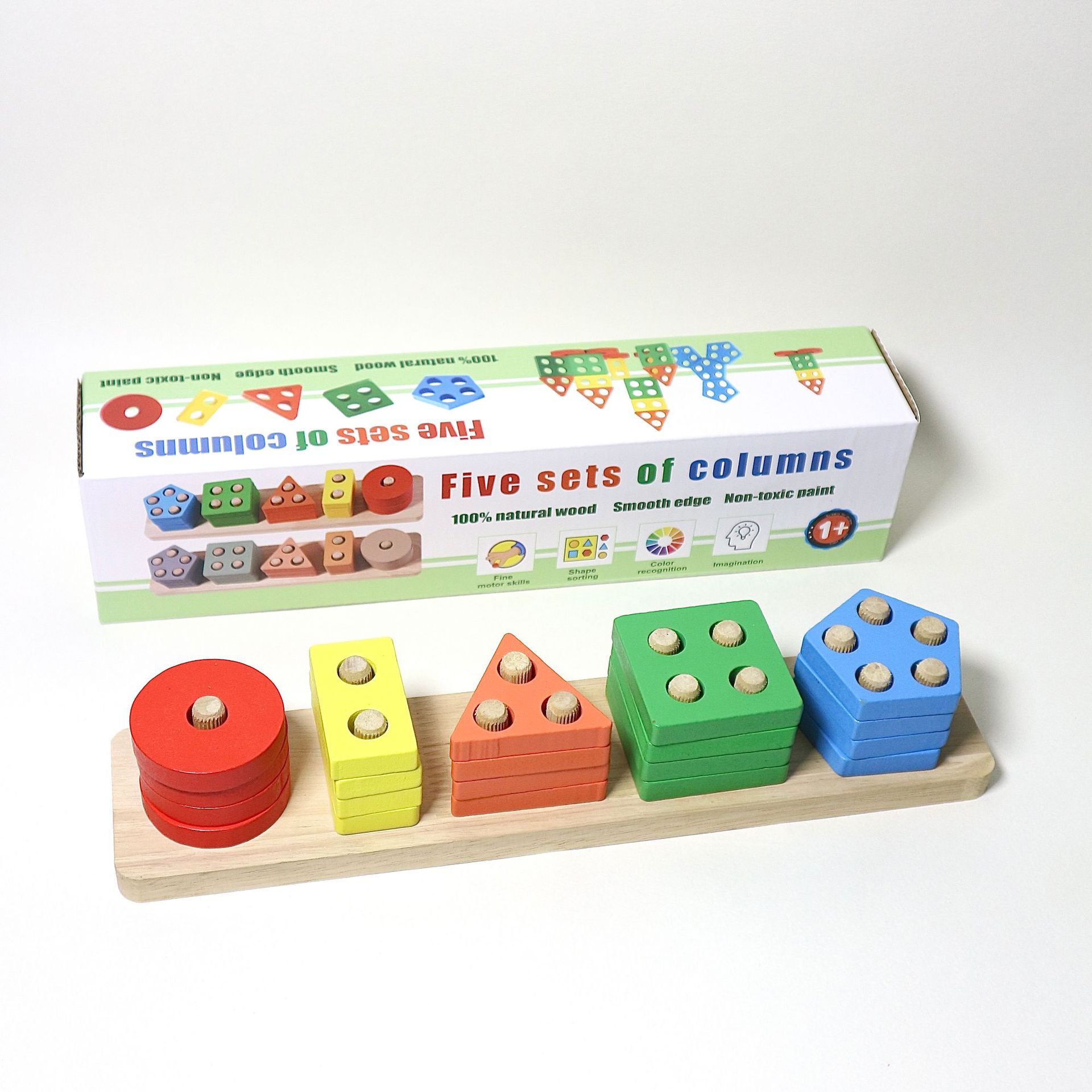 국경 간 CPC 컬러 5개 세트 기둥 단단한 나무 색상 인식 지능 기둥 기하학적 모양 세트 교육 장난감스토어 가기