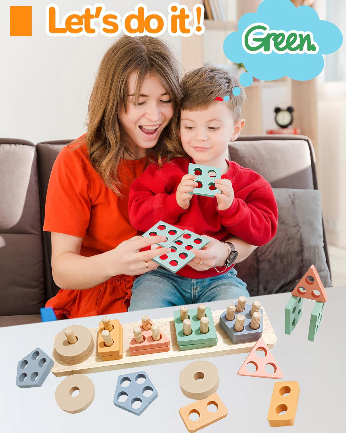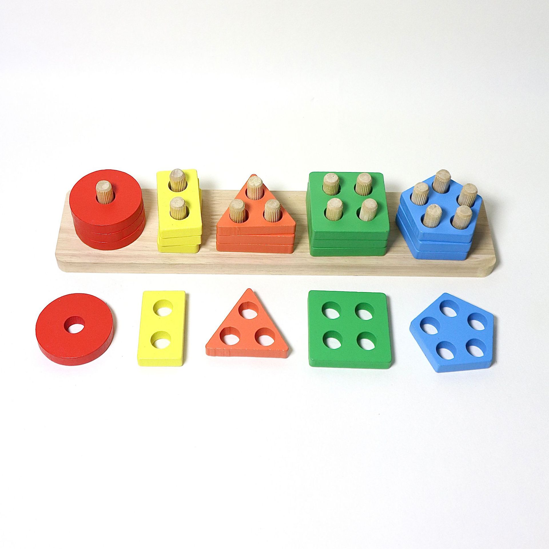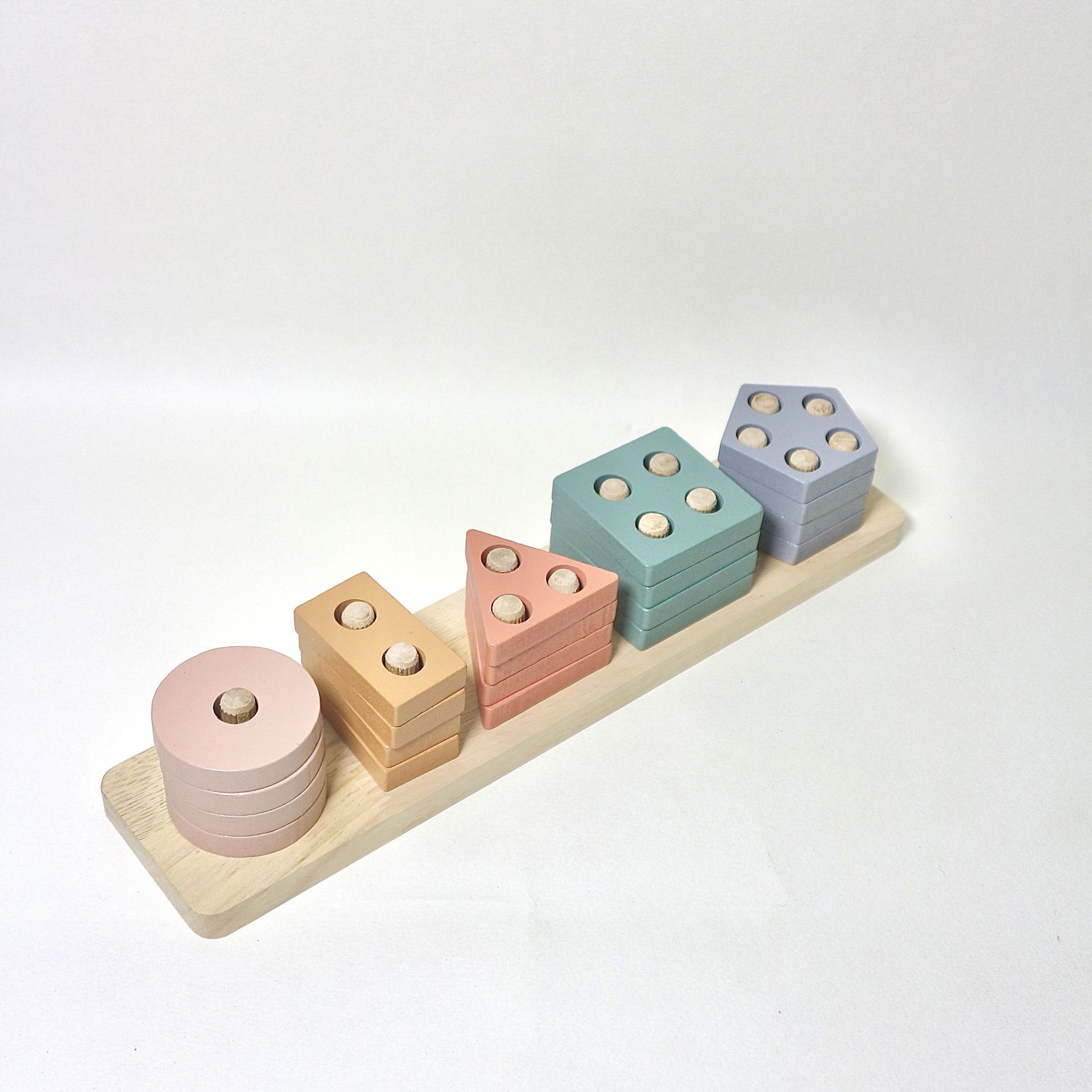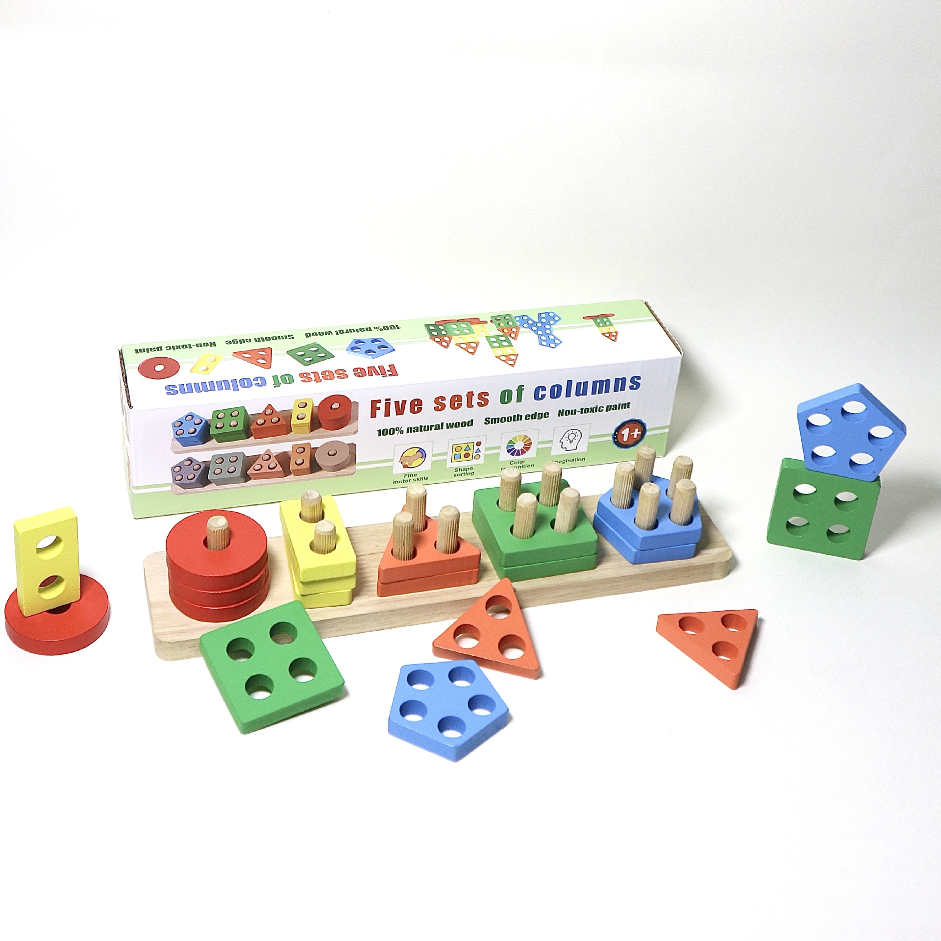 국경 간 CPC 컬러 5개 세트 기둥 단단한 나무 색상 인식 지능 기둥 기하학적 모양 세트 교육 장난감스토어 가기