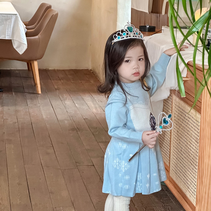 가을과 겨울 기모 소녀 원피스 공주 아이샤 원피스 스웨터 원피스 소녀 스웨터 공주 아이샤 원피스 아동 의류 도매