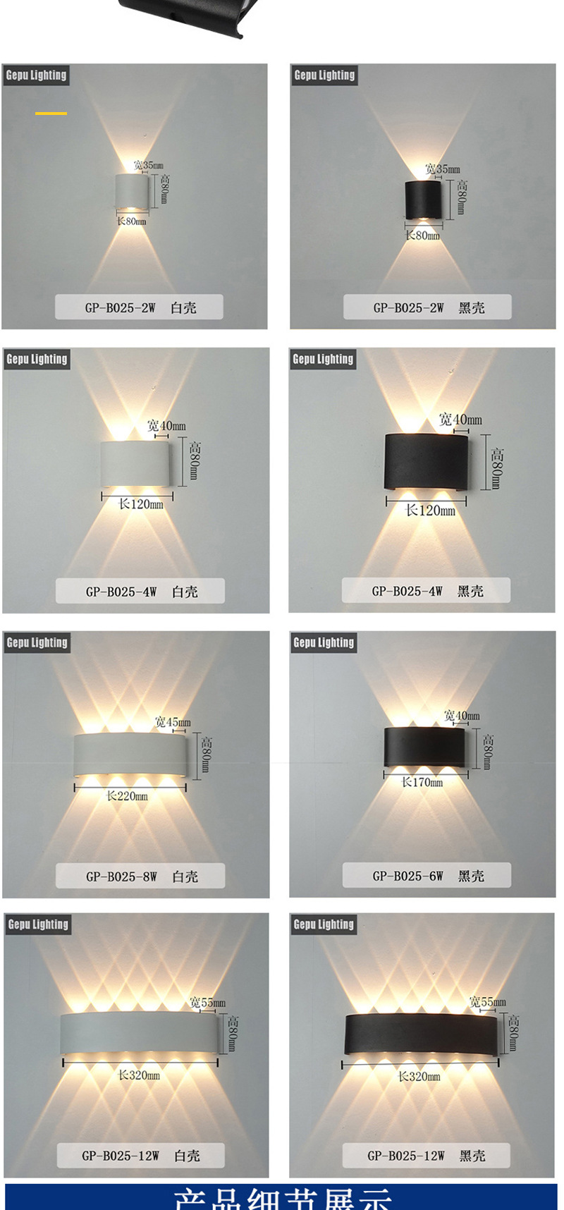 야외 벽 램프 led 더블 헤드 위아래 조명 6 헤드 8 헤드 10 헤드 해외 무역 발코니 통로 야외 안뜰 조명스토어 가기