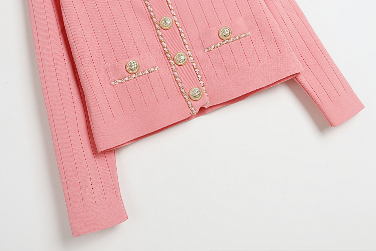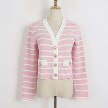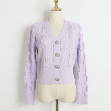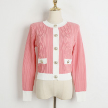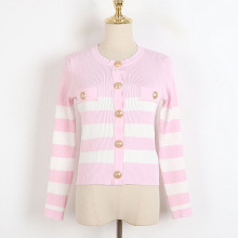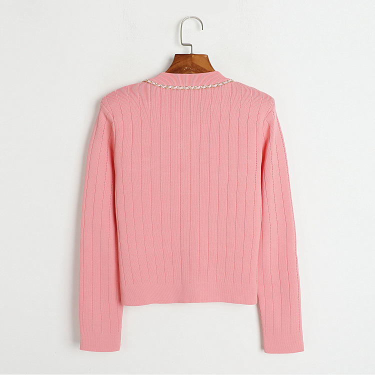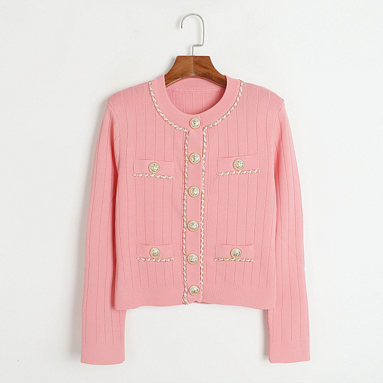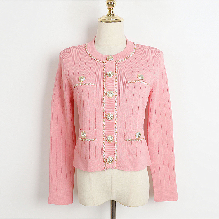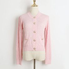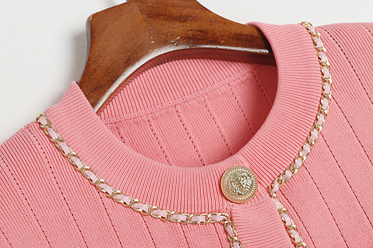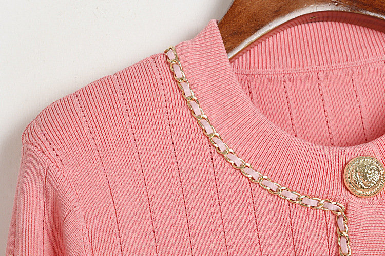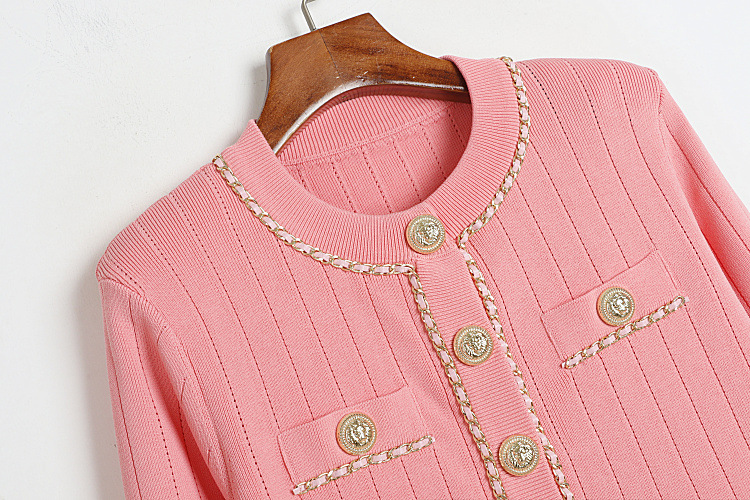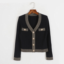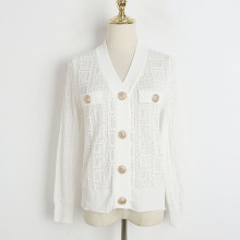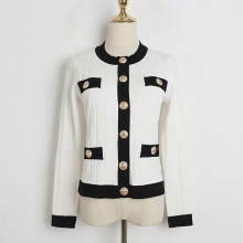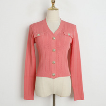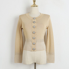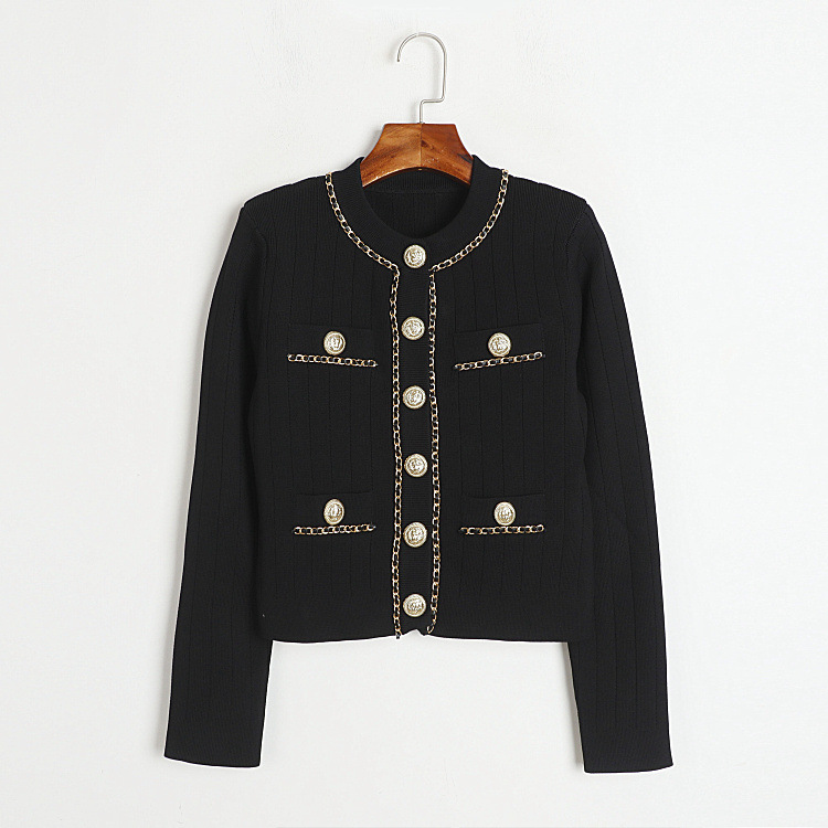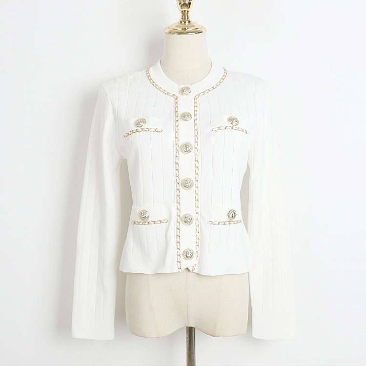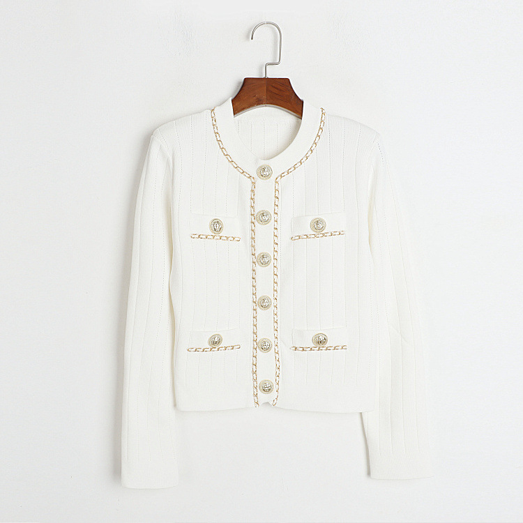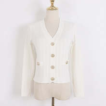우아한 사교계 라이온 헤드 버클 슬림핏 슬리밍 모든 매치 탑 가을 2023 새로운 향기로운 아이스 실크 니트 가디건