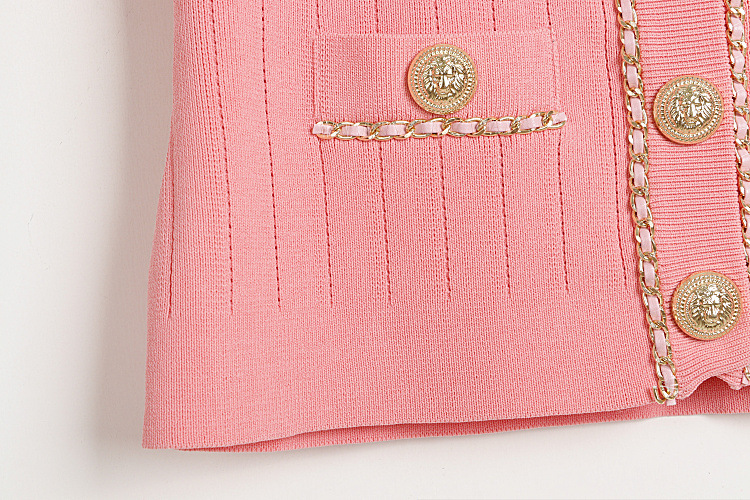 우아한 사교계 라이온 헤드 버클 슬림핏 슬리밍 모든 매치 탑 가을 2023 새로운 향기로운 아이스 실크 니트 가디건스토어 가기
