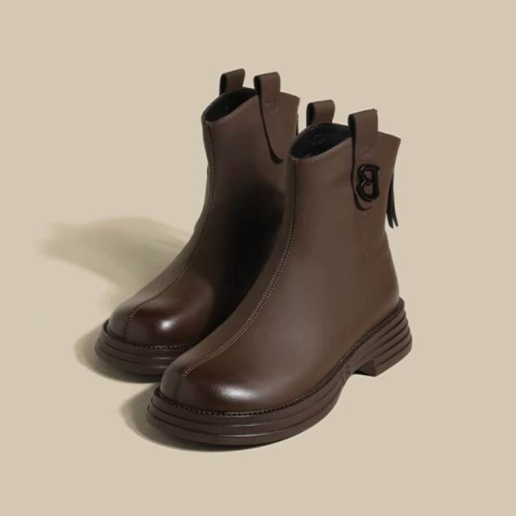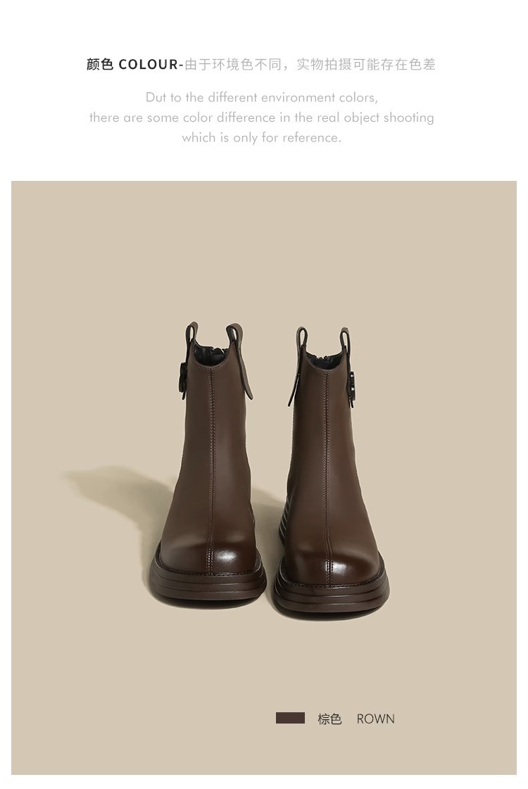 Qiao Fei Fei 두꺼운 밑창 숏부츠 여성용 2023 신상 봄 가을 단화 작은 발목 영국식 하이힐 레트로 프렌치 캐주얼 다용도스토어 가기