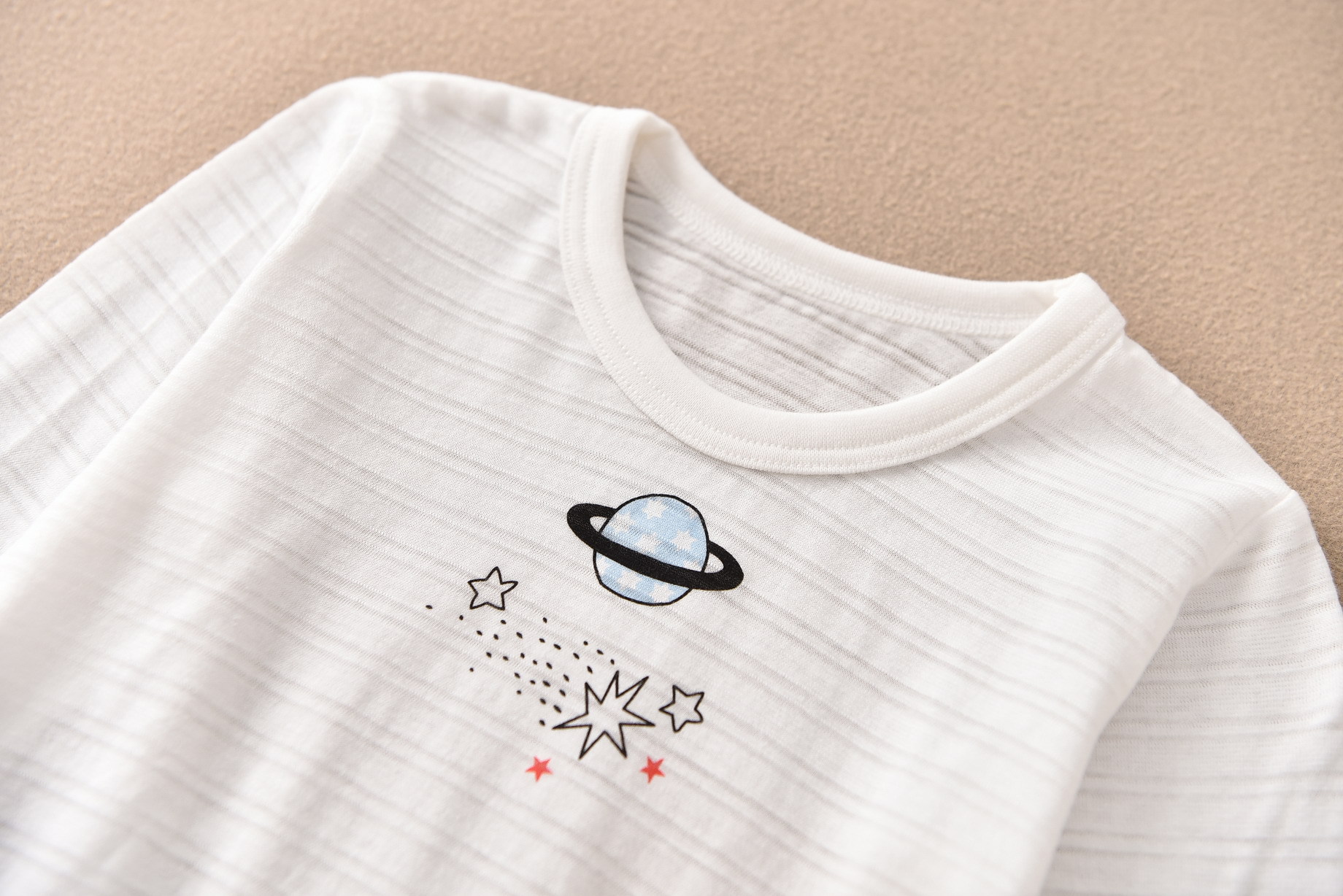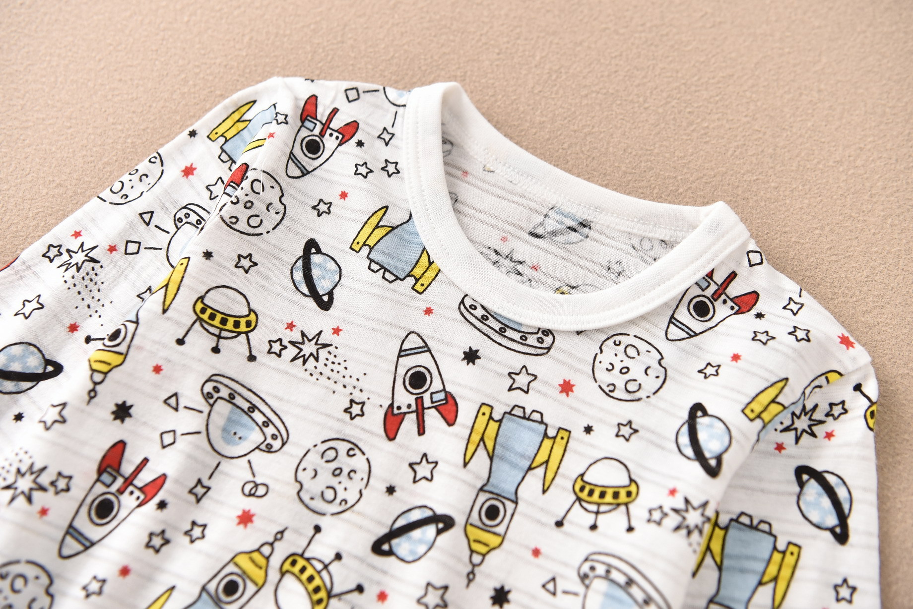 这款衣服是我们精挑细选的 面料和款式 印花也是我们费心设计和定版 面料采用棉纱SZ捻棉纱织布而成的CHAO薄达到 吸汗,透气,速干工艺哦~~春秋季娃娃们可打底哦 面料柔软 环保印花 放心宝宝穿着 实物更漂亮哦~~很惊艳的感觉