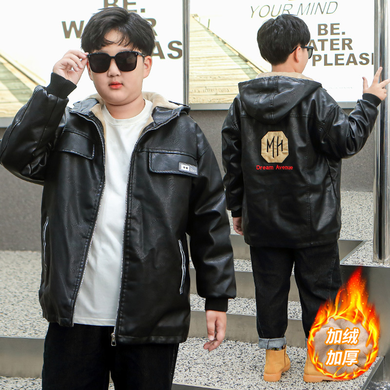통통한 소년의 큰 소년의 겨울 가죽 코트 기모 두꺼운 퀼트 겨울 재킷 느슨한 지방 초대형 탑스토어 가기