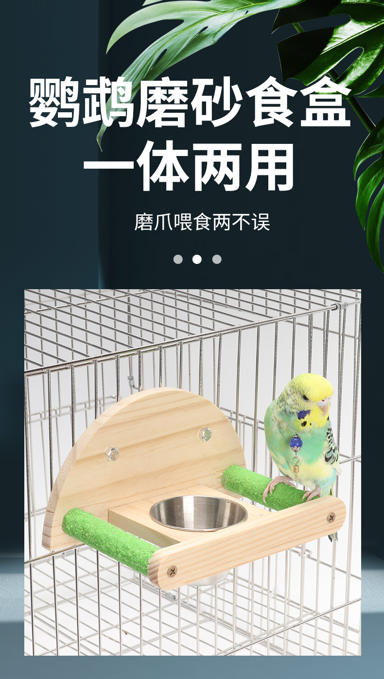 鹦鹉不锈钢鸟食杯磨砂站杆镜子食盒虎皮牡丹饲料盒鸟笼配件喂食器