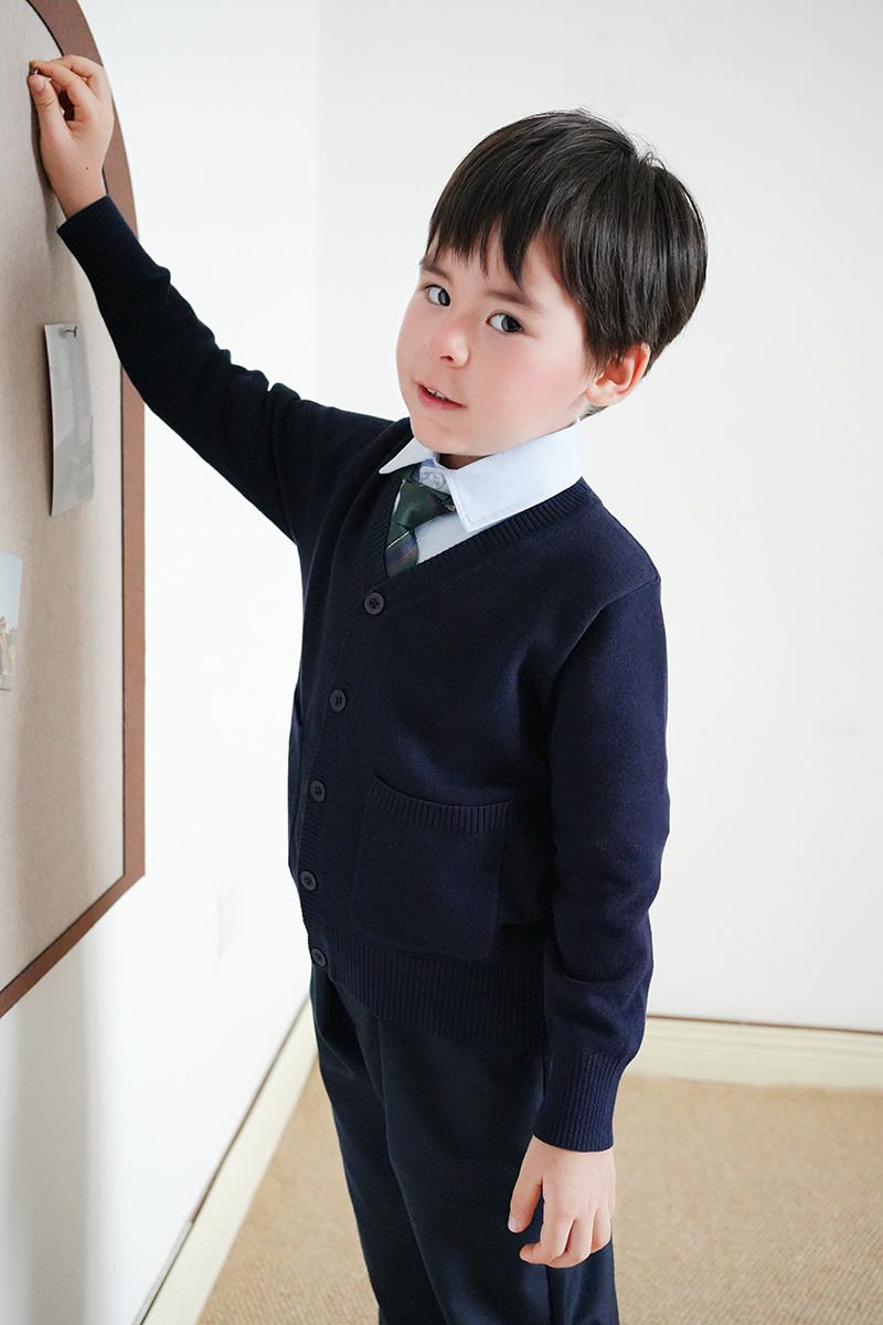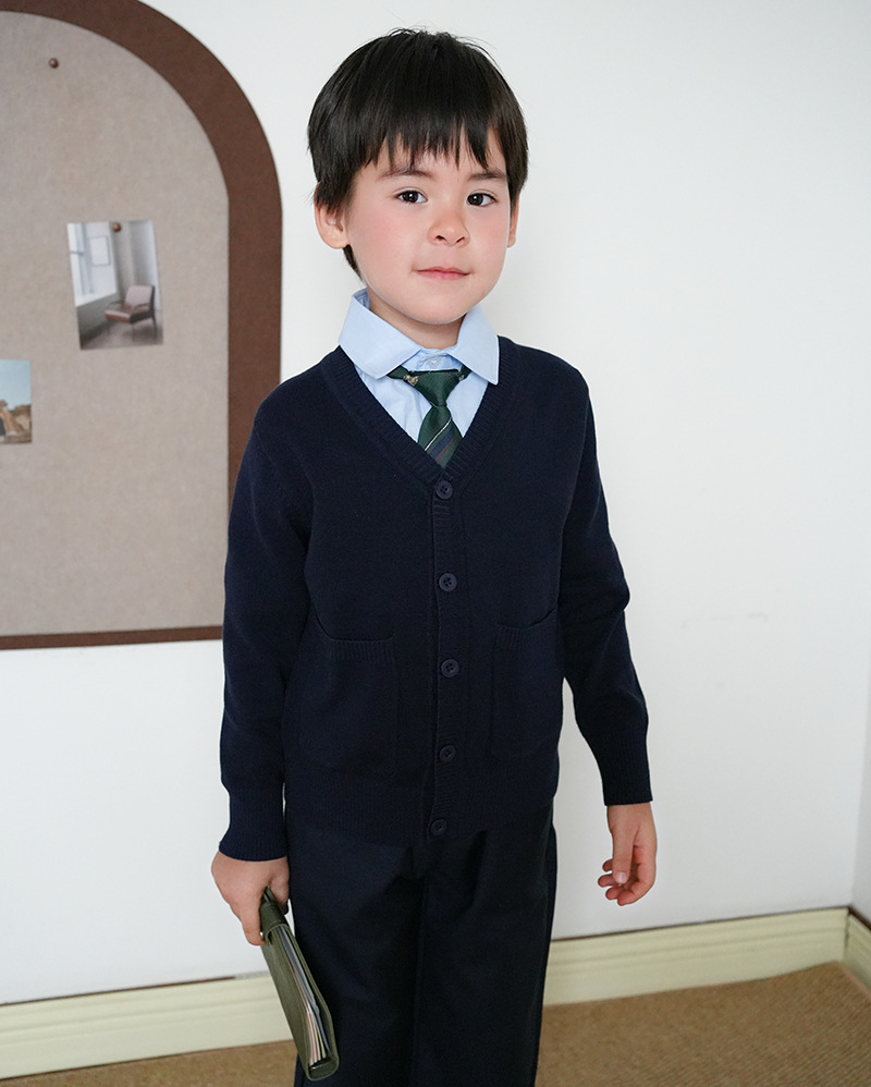 크로스 보더 봄과 가을 부모-자식 의류 CUHK 아동 니트 카디건 포켓 jk 교복 학생 여아 스웨터 코트 도매스토어 가기