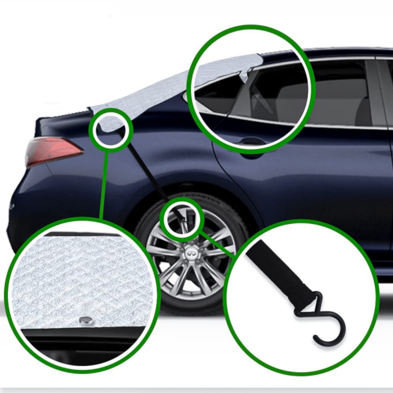 • 【四季防护罩】后窗雪罩有助于防止雪、冰、霜冻、暴雪和其他冬季杂物。 无需在早晨刮雪,节省您的时间。还可以阻挡 98% 的有害紫外线,让您的爱车在炎热的夏日保持凉爽和舒适。