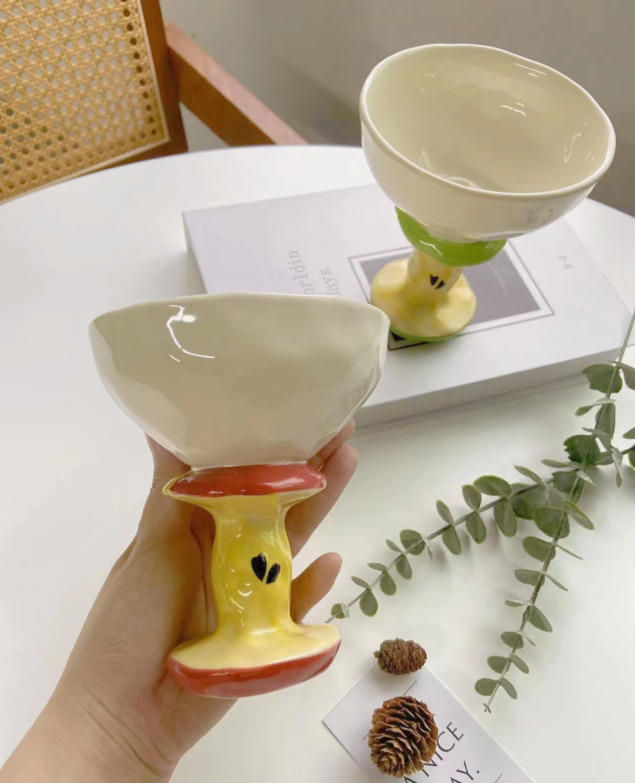 먹은 애플 크리 에이 티브 애플 코어 키 큰 세라믹 컵 디저트 컵 샐러드 그릇 아이스크림 아침 식사 컵 고양이 그릇스토어 가기