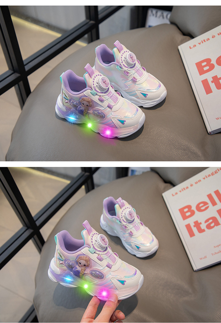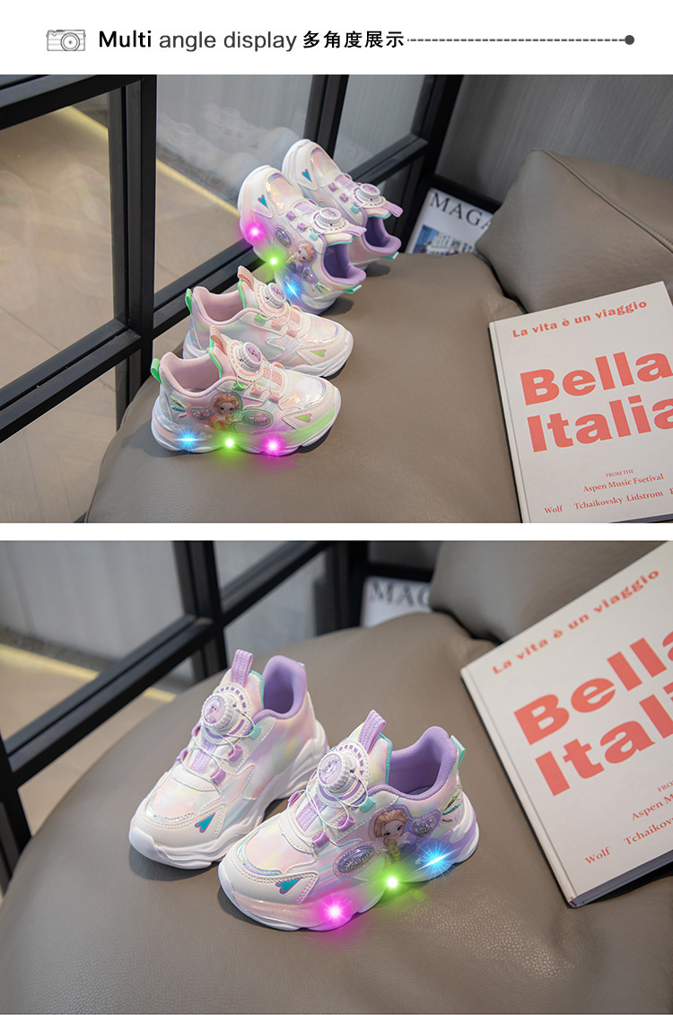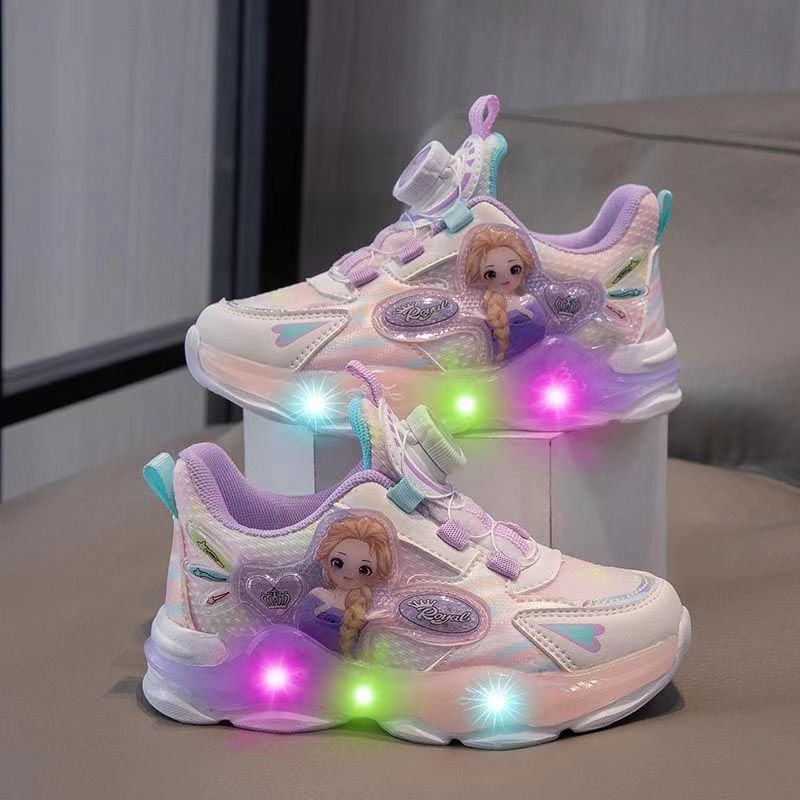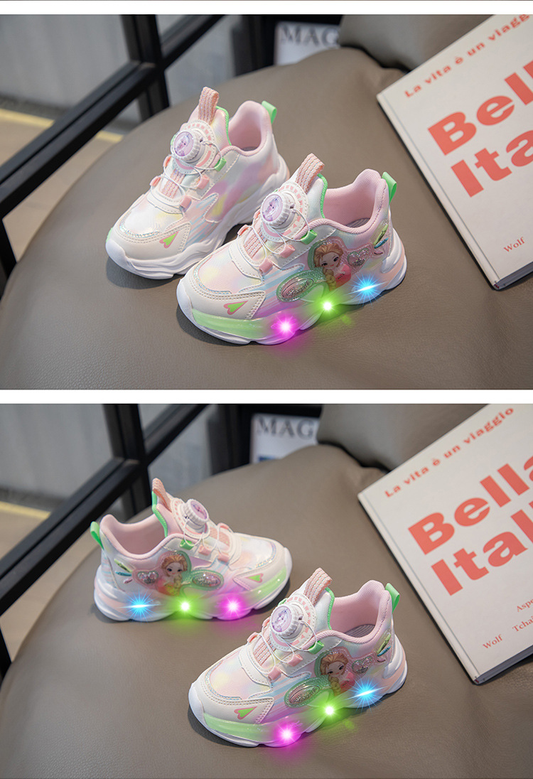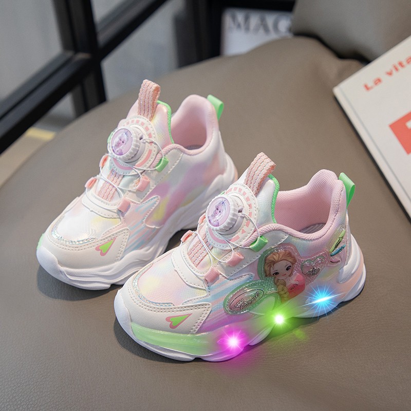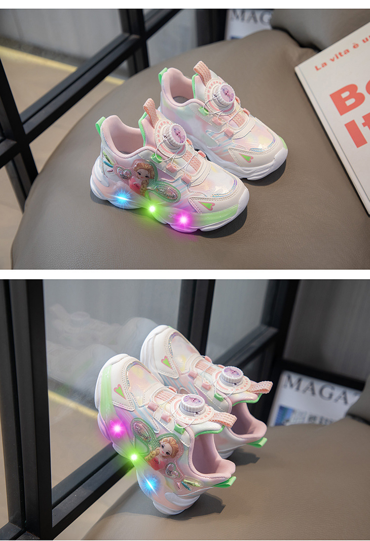 여아 운동화 2024 가을 가죽 공주 어린이 신발 여아 통기성 발광 라이트업 신발 러닝 아빠 신발스토어 가기