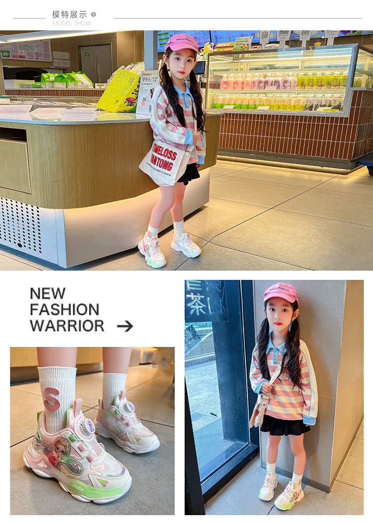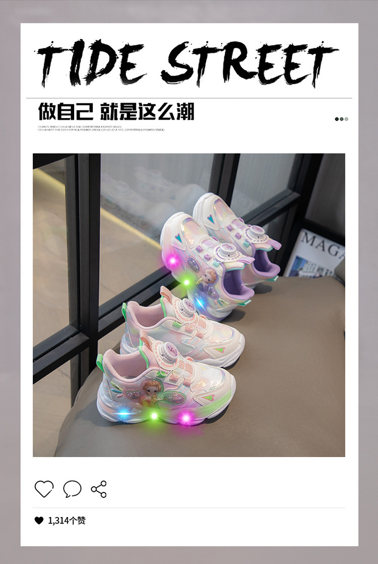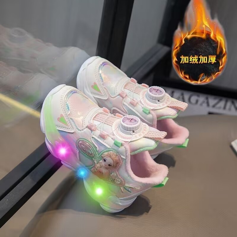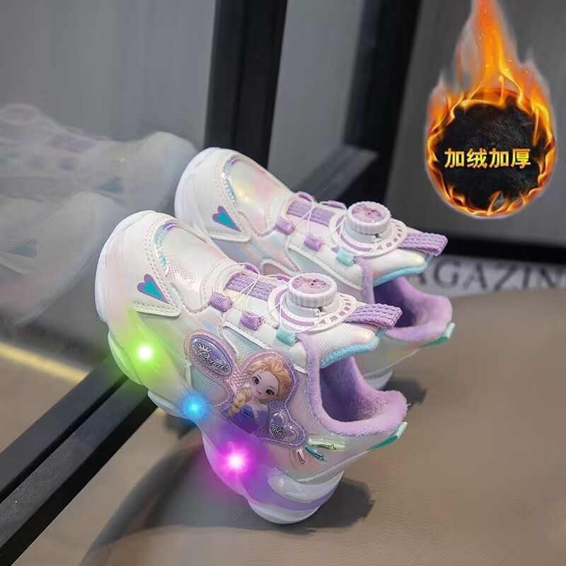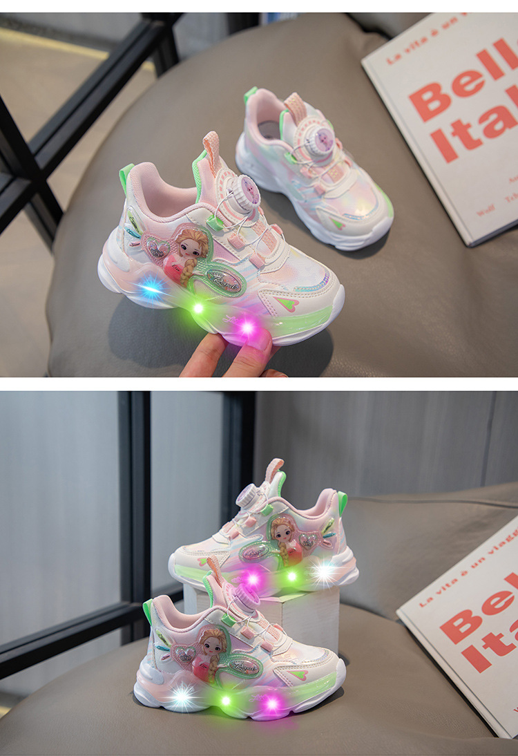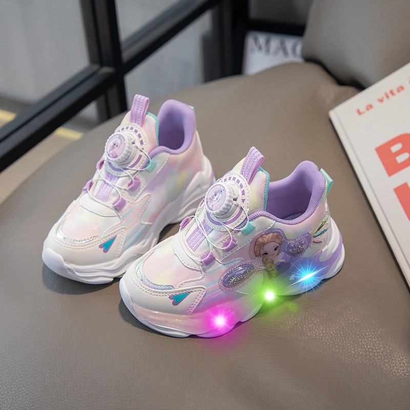 여아 운동화 2024 가을 가죽 공주 어린이 신발 여아 통기성 발광 라이트업 신발 러닝 아빠 신발스토어 가기