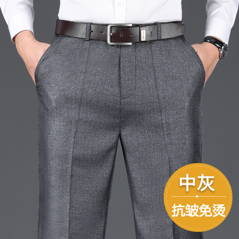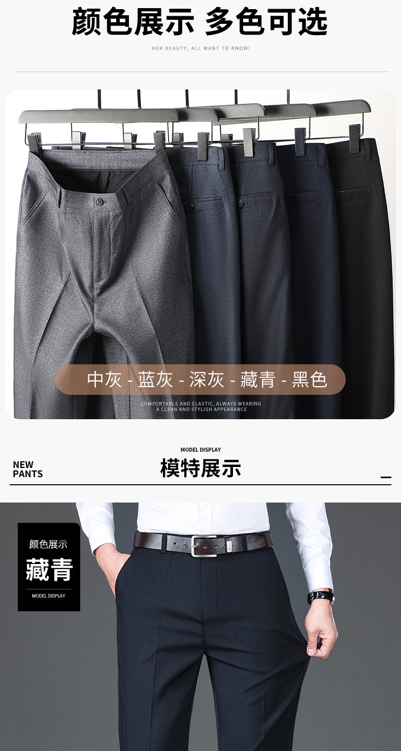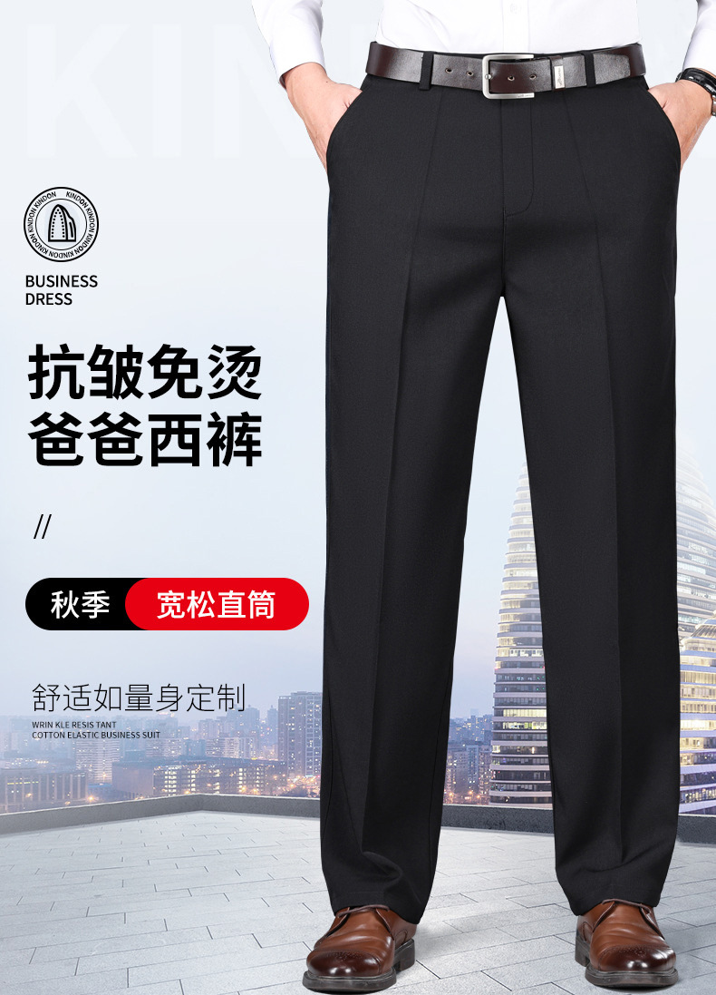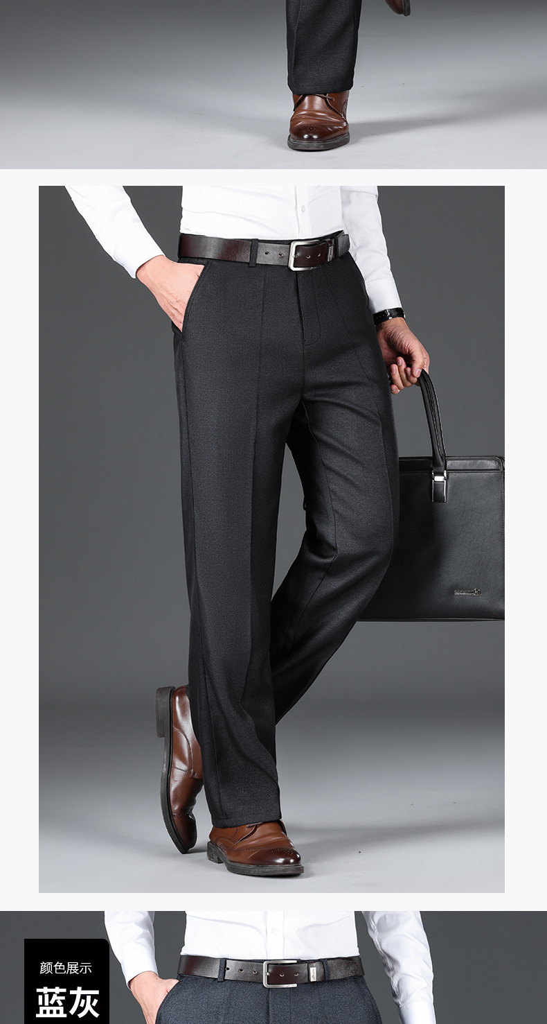 비즈니스 캐주얼 바지 스트레이트 튜브 느슨한 하이 웨이스트 가을 원피스 바지 양면 탄성 부드러운 피부 친화 남성 바지스토어 가기