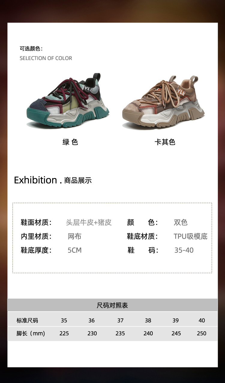 2023 가을과 겨울 새로운 조커 대조 색상 첫 번째 레이어 소가죽 토레 신발 로우 탑 두꺼운 단독 증가 레저 운동화 여성 패션