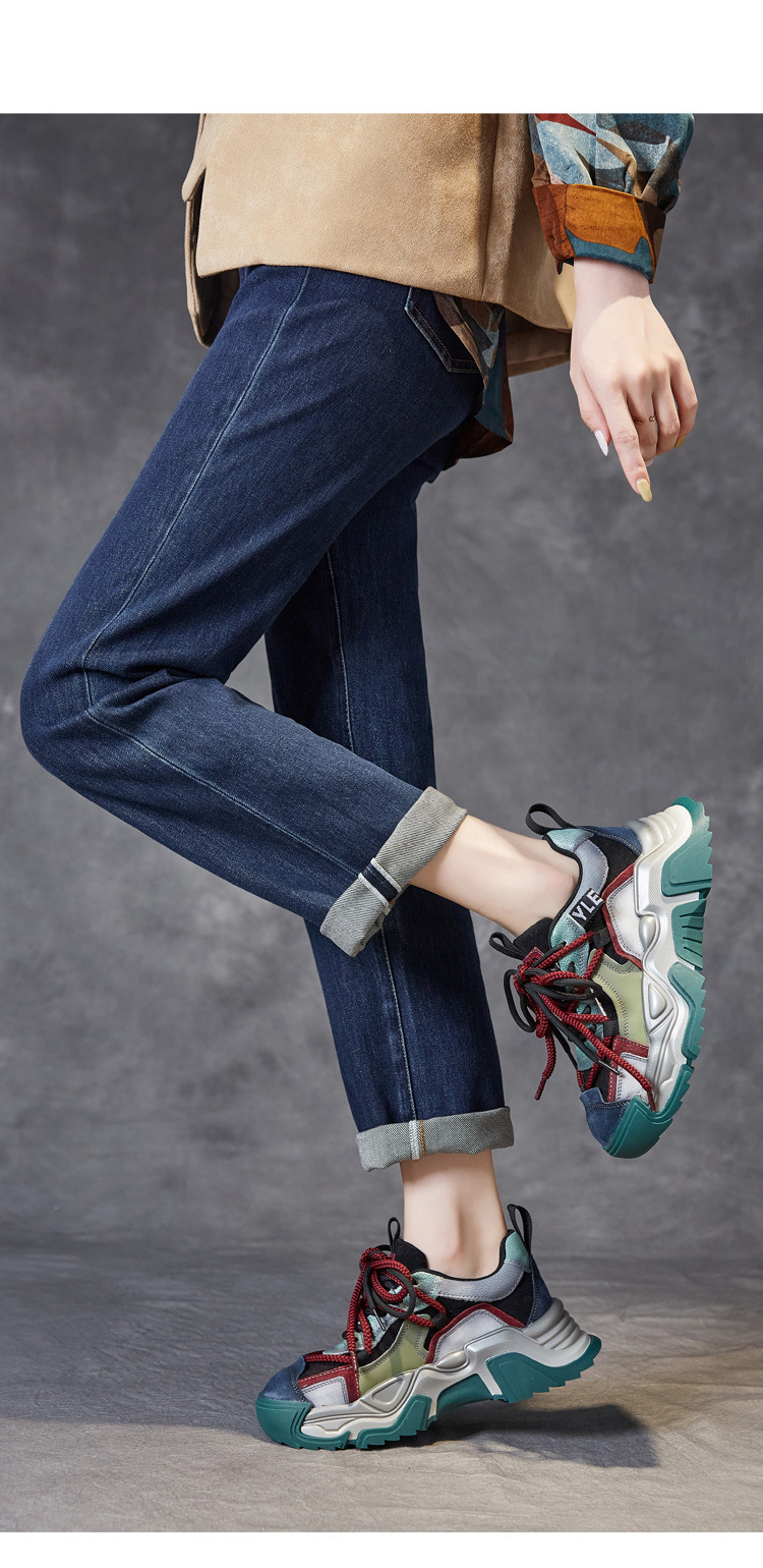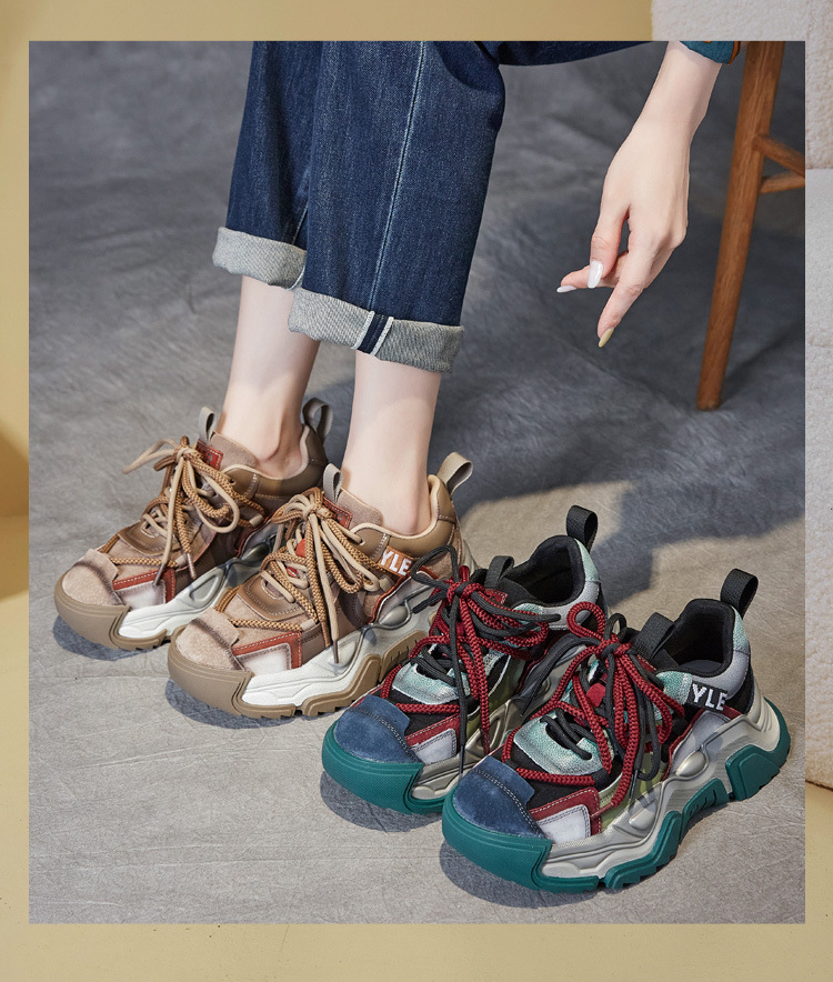2023 가을과 겨울 새로운 조커 대조 색상 첫 번째 레이어 소가죽 토레 신발 로우 탑 두꺼운 단독 증가 레저 운동화 여성 패션스토어 가기
