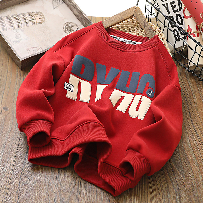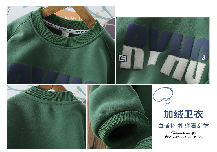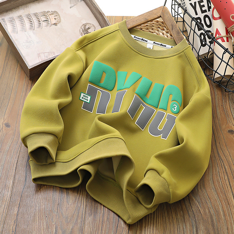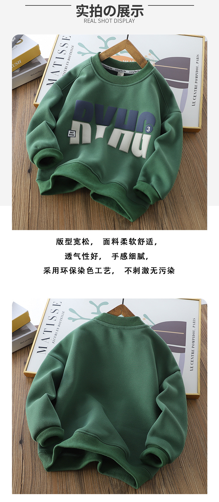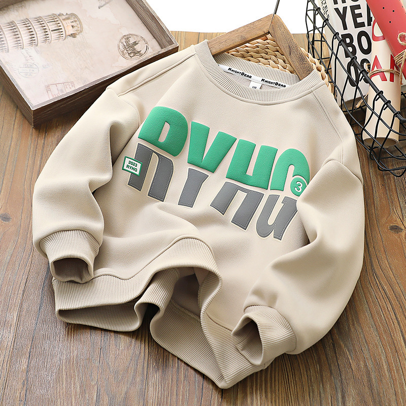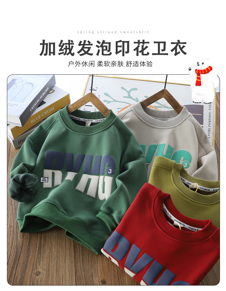 아동용 양털 스웨트 셔츠 2024 겨울 소년 두꺼운 따뜻한 탑 한국 스타일 중형 및 대형 아동용 긴팔 라운드 넥 셔츠 유행 아동용스토어 가기