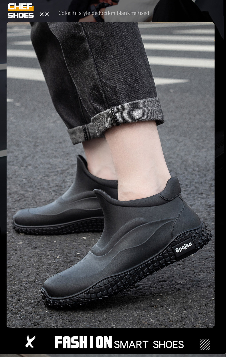 워터 슈즈 남성용 방수 짧은 튜브 비 신발 미끄럼 방지 고무 신발 유행 새로운 경량 내마모성 작업 신발 비오는 날 신발스토어 가기