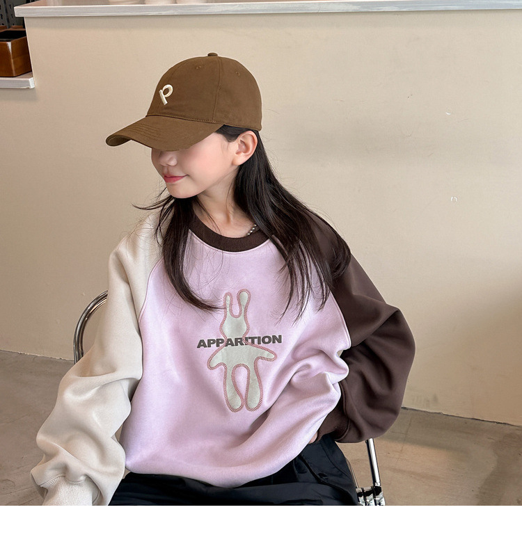 • 대비 색상 토끼 스웨터-핑크 보라색-기모