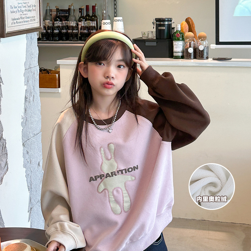 여아 스웨트셔츠 가을 겨울 2026 신상 중대형 아동용 루즈핏 라운드넥 만화 캐릭터 아동 캐주얼 긴팔 상의 겨울용 기모스토어 가기