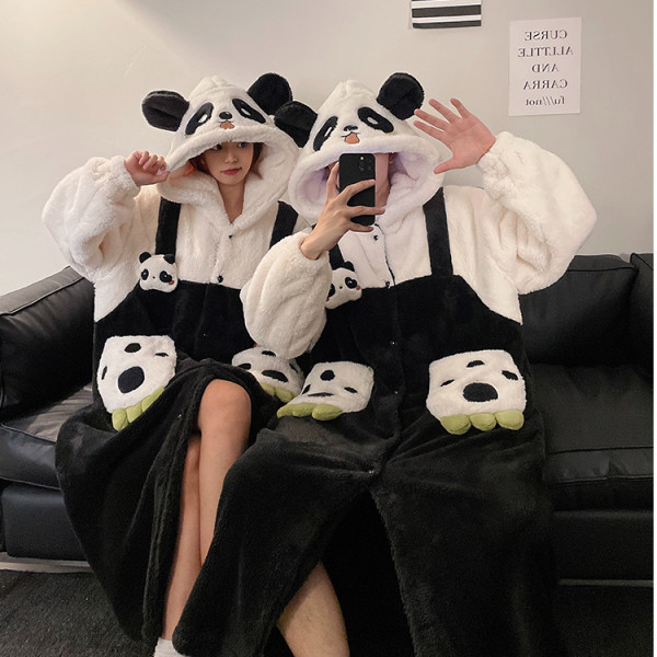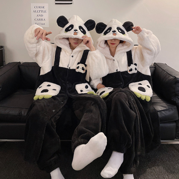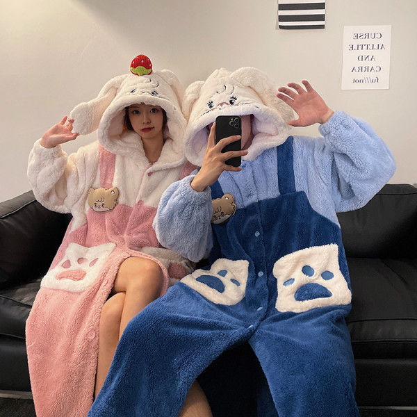 잠옷 커플의 겨울 봉제 긴 잠옷 두꺼운 기모 만화 뻣뻣한 가을과 겨울 가정 옷 세트스토어 가기