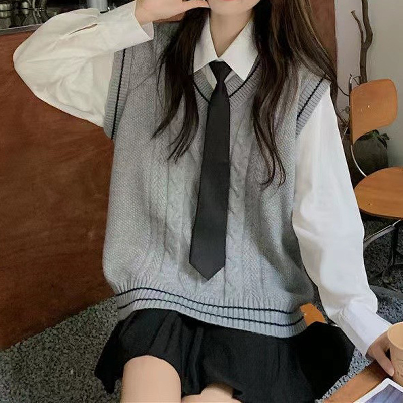 2023 봄, 가을 한국 스타일 대학 스타일 니트 조끼 레이어드 v 넥 느슨한 게으른 스타일 민소매 조끼 스웨터 여성용