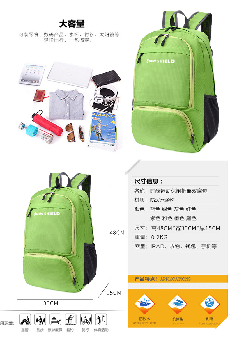 엄선된 스킨백, 경량 접이식 백팩, 야외 스포츠 백팩, 레저 여행, 하이킹, 등산 백팩, 로고