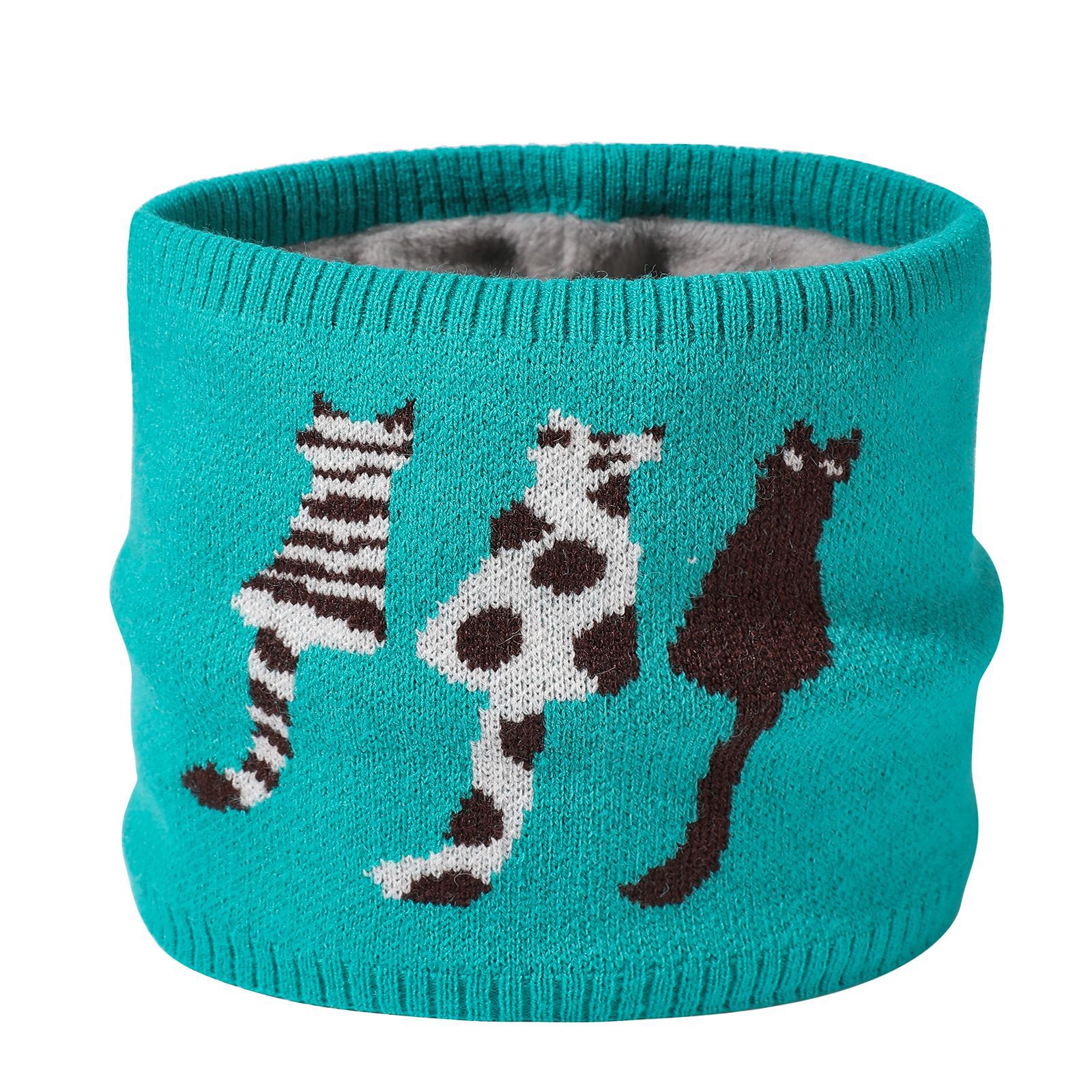 레오파드 무늬 고양이 만화 어린이 스카프 겨울 기모 두꺼운 니트 칼라 귀여운 방풍 따뜻한 목 스카프