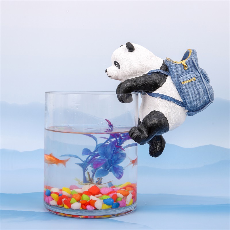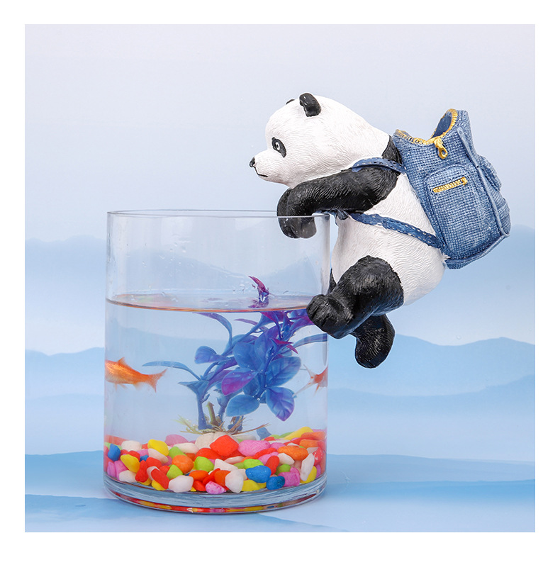 배낭 팬더 만화 어항 장식품 수지 공예 가정 조경 장식 컴퓨터 디스플레이 교수형 풍경