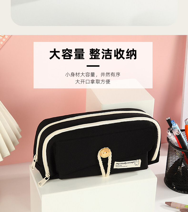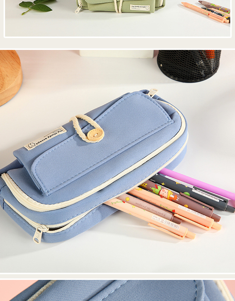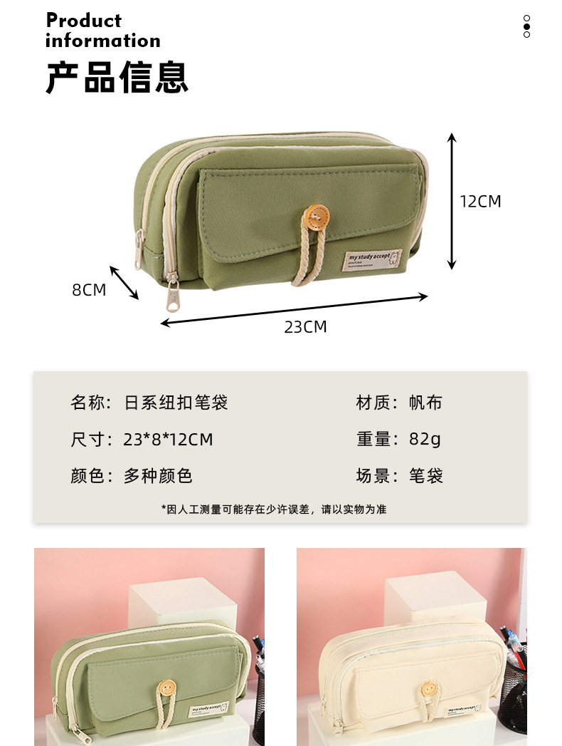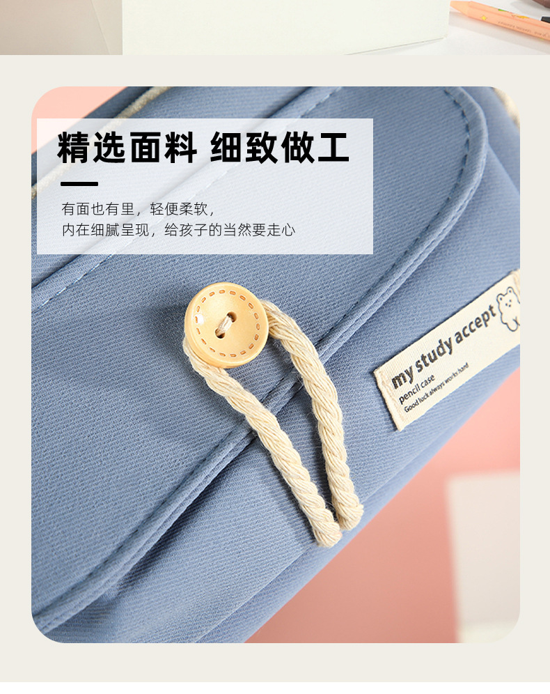 버튼 레이어드 필통, 고급스럽고 대용량, 초등학생 캔버스 필통, 심플한 고등학생 문구가방스토어 가기