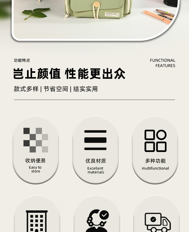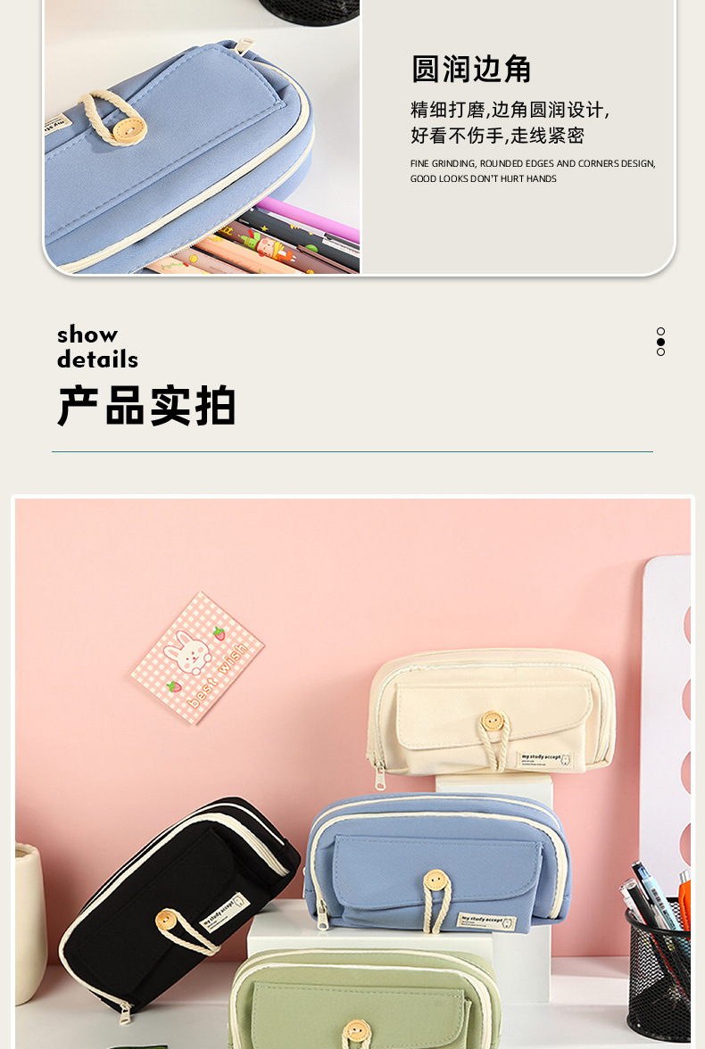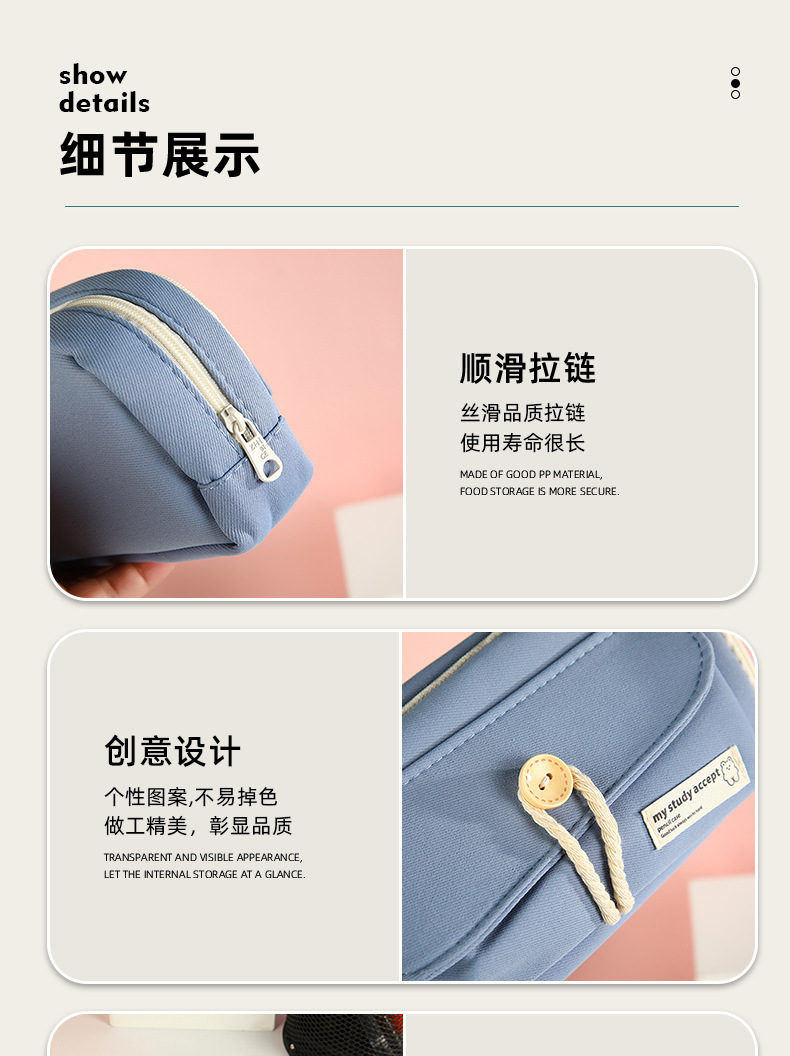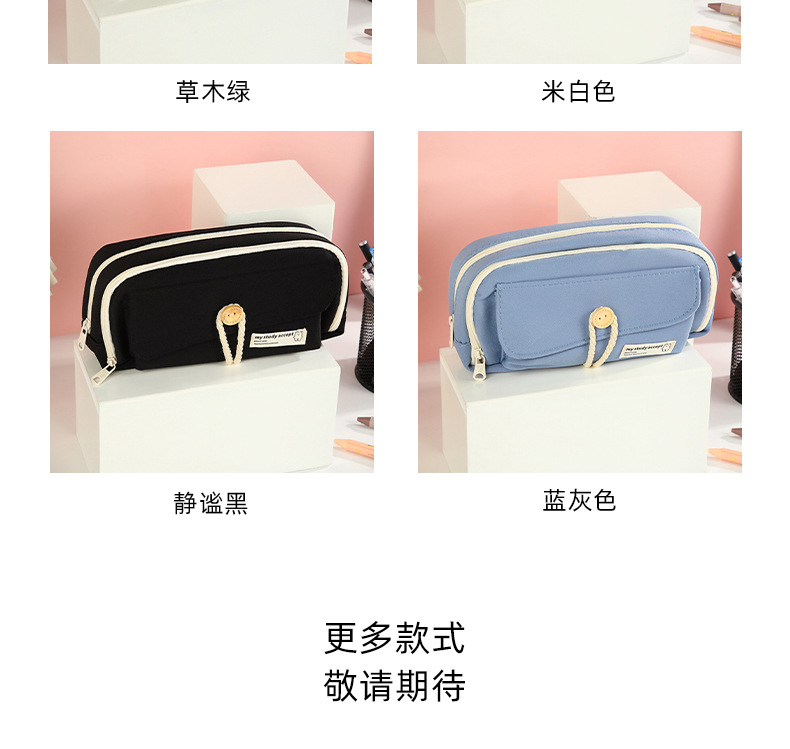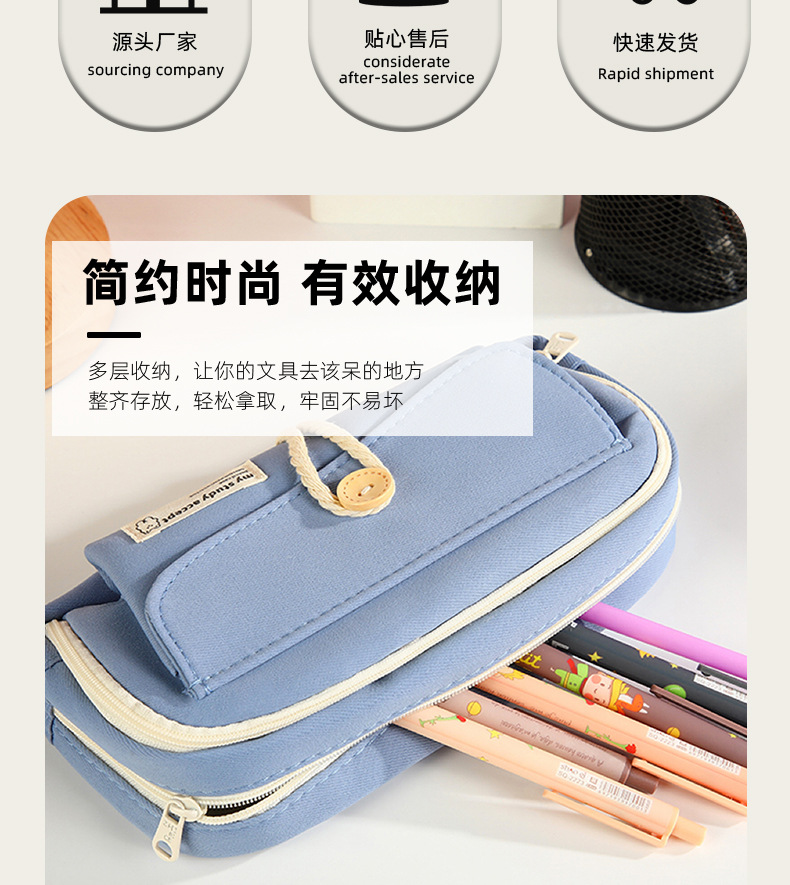 버튼 레이어드 필통, 고급스럽고 대용량, 초등학생 캔버스 필통, 심플한 고등학생 문구가방스토어 가기