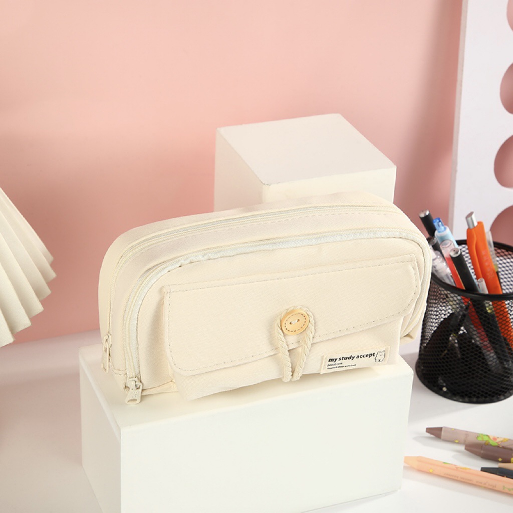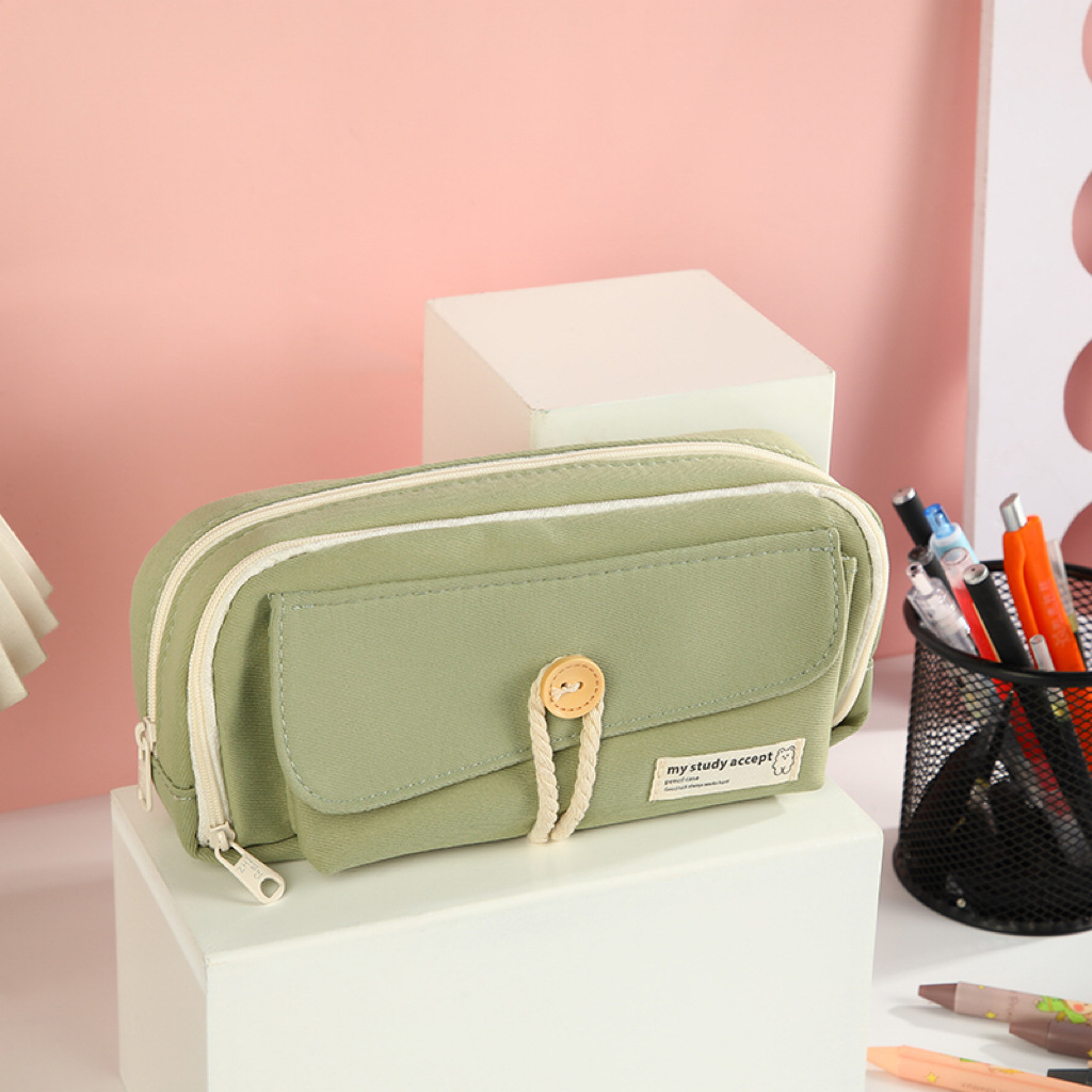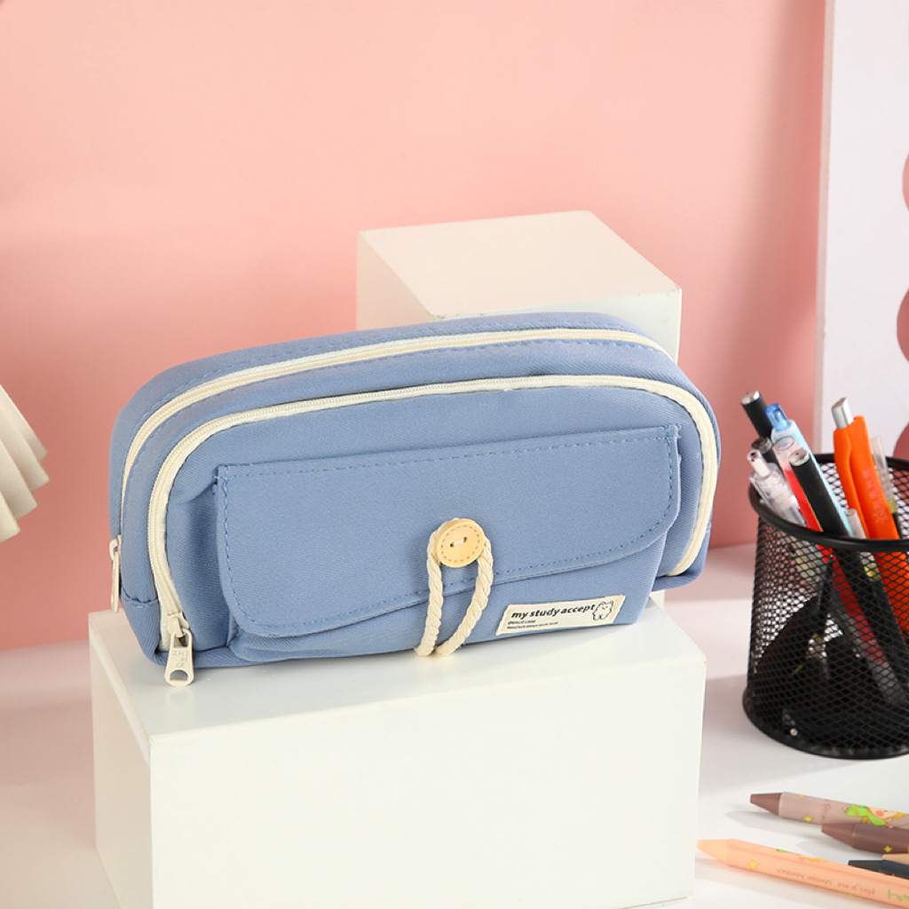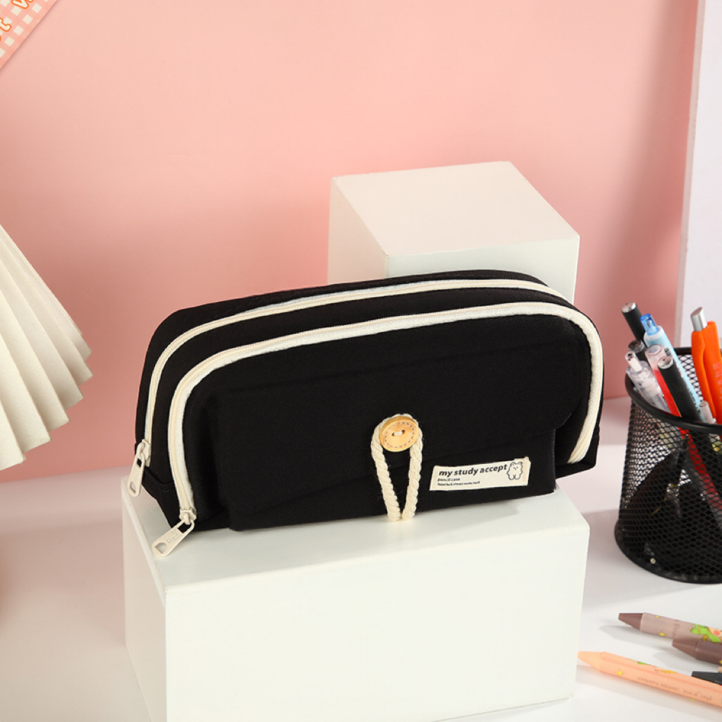 버튼 레이어드 필통, 고급스럽고 대용량, 초등학생 캔버스 필통, 심플한 고등학생 문구가방
