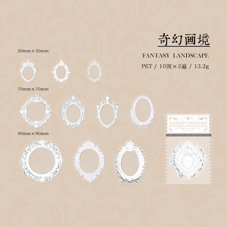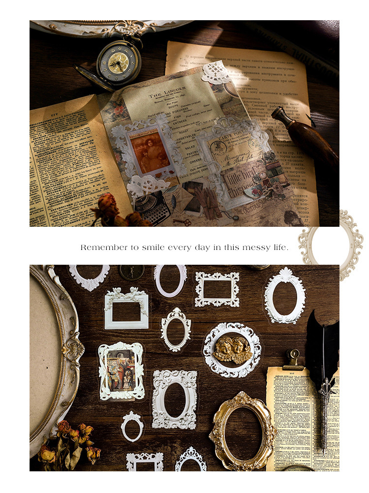 설탕시 사진 프레임 박물관 시리즈 PET 스티커 가방 복고풍 바로크 사진 프레임 콜라주 손 계정 장식 재료 스티커