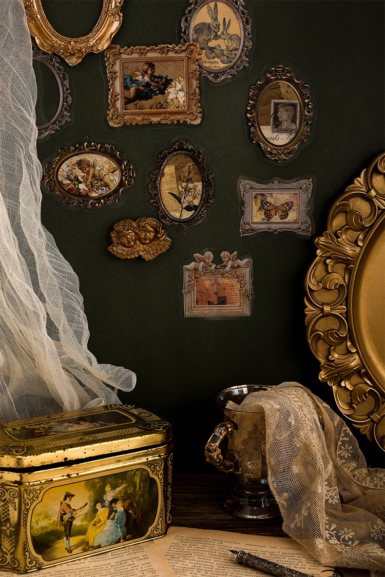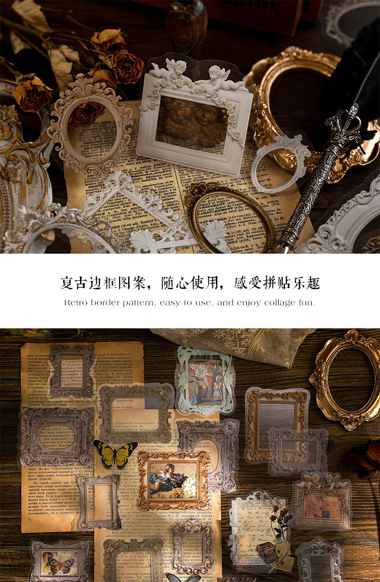 설탕시 사진 프레임 박물관 시리즈 PET 스티커 가방 복고풍 바로크 사진 프레임 콜라주 손 계정 장식 재료 스티커스토어 가기