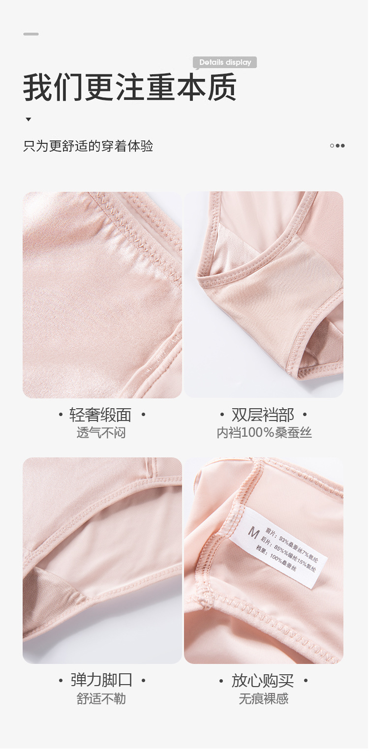 과일 사랑 럭셔리 새틴 실크 여성용 팬티 얇은 모델 힙을 감싸는 통기성 좋은 뽕나무 실크 중간 허리 삼각 팬티 편안한 착용감스토어 가기