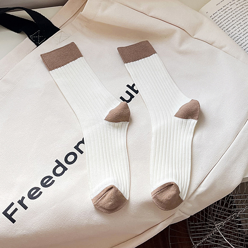 양말 여성 가을과 겨울 더블 니들 컬러 매칭 미드 튜브 여성 양말 새로운 한국 스타일 하이 튜브 스택 양말 올매치 화이트 여성 면 양말