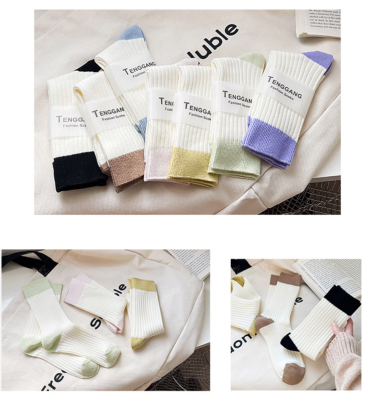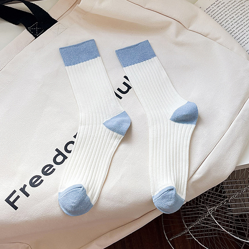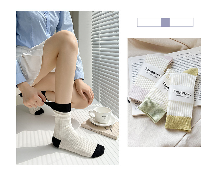 양말 여성 가을과 겨울 더블 니들 컬러 매칭 미드 튜브 여성 양말 새로운 한국 스타일 하이 튜브 스택 양말 올매치 화이트 여성 면 양말스토어 가기