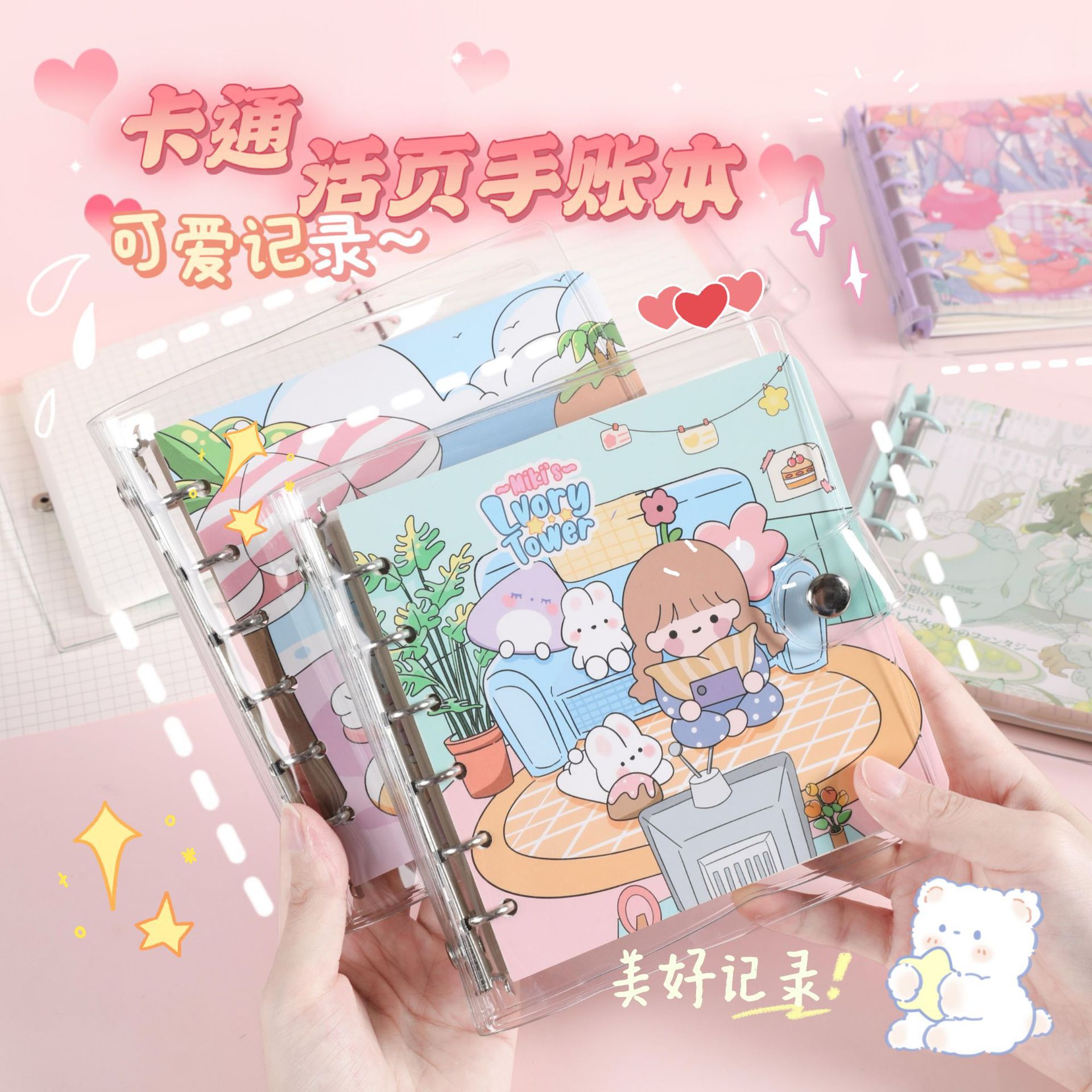 귀여운 소녀의 하트 스퀘어 핸드 북 하이 컬러 가치 학생 문구 다이어리 북 분해 느슨한 잎 코일 북 핸드 북