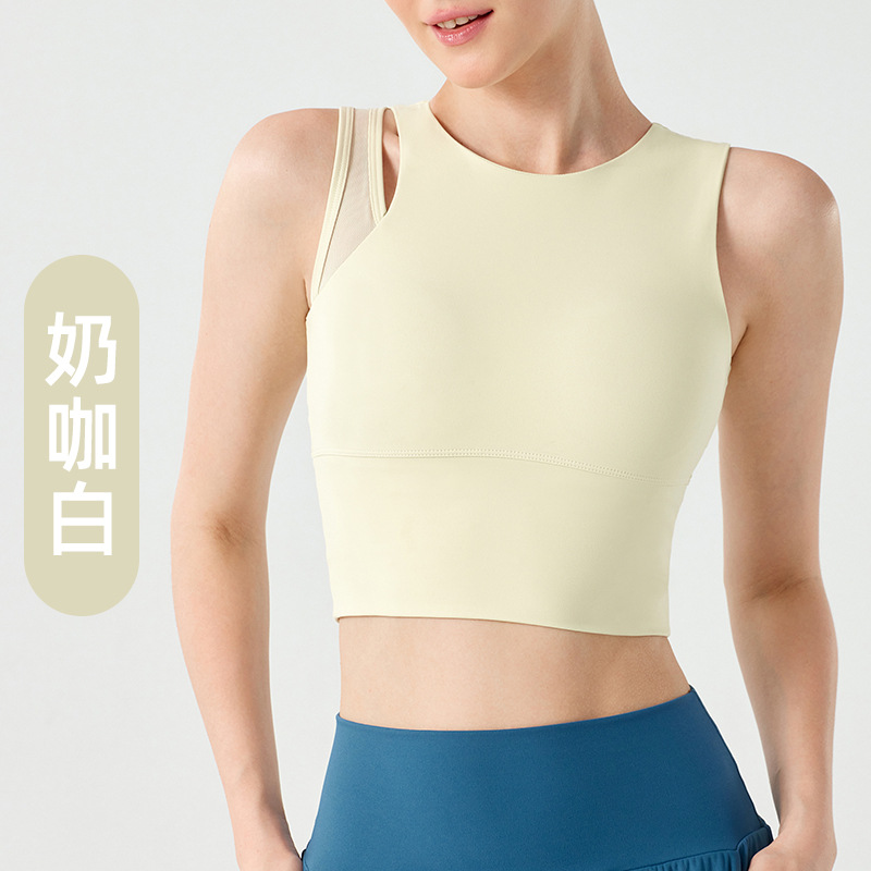고강도 충격 방지 스포츠 속옷 여성용 싱글 숄더 스트랩 메쉬 러닝 뷰티 백 원피스 고정 컵 요가 조끼 여성용스토어 가기
