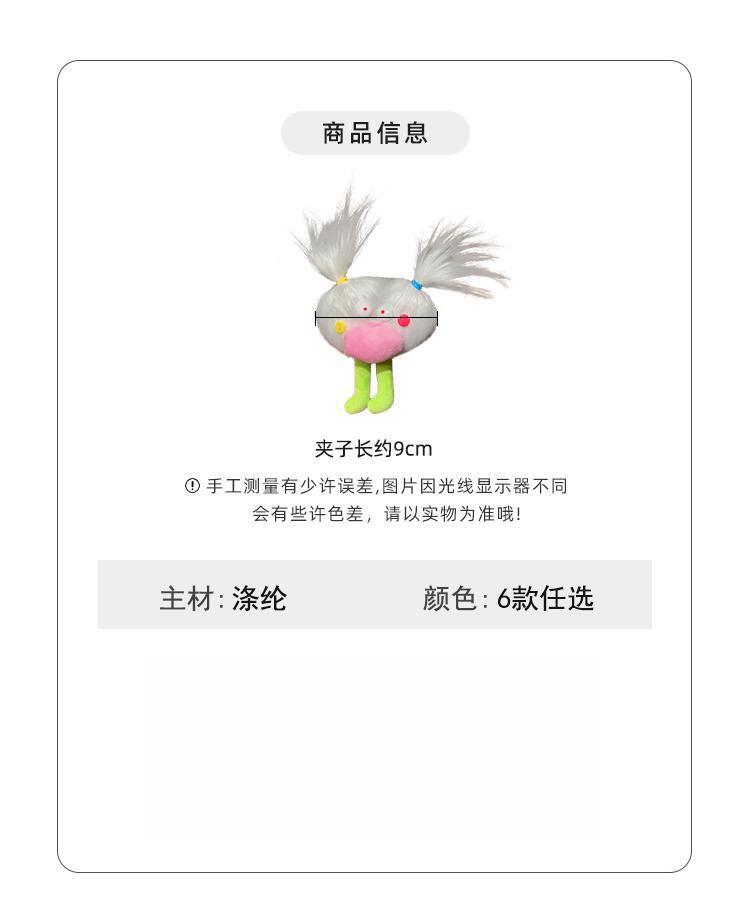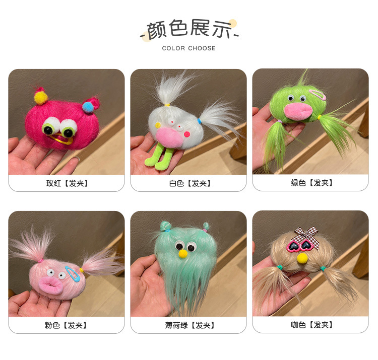 그로테스크 못생긴 인형 BB 클립 틈새 소녀 봉제 귀여운 못생긴 귀여운 이마 깨진 머리 앞머리 클립 위안 감각 헤어 액세서리 여성