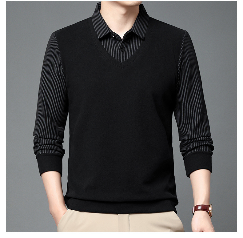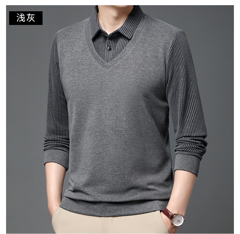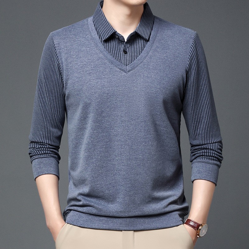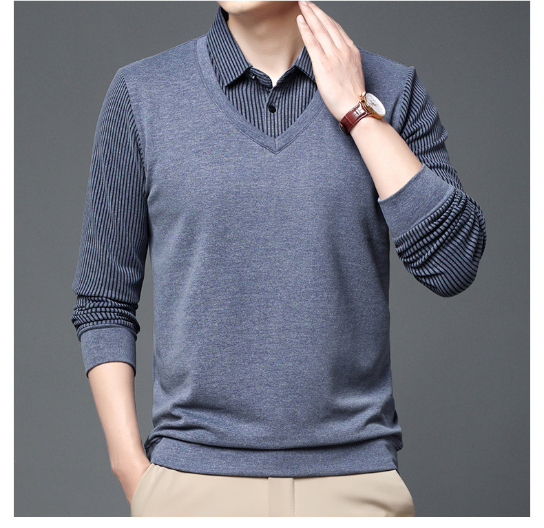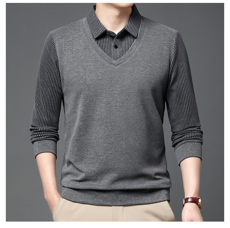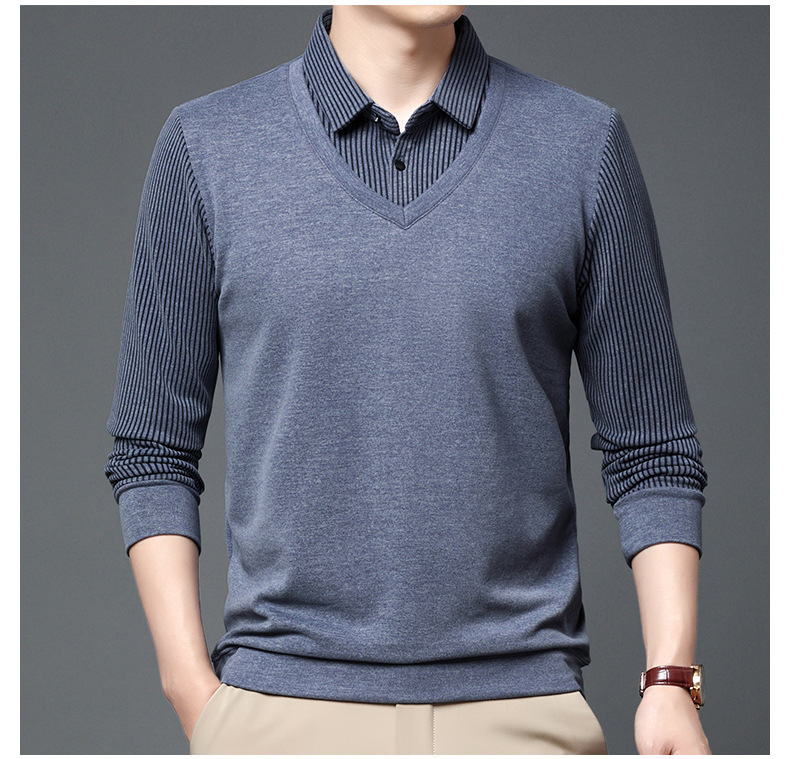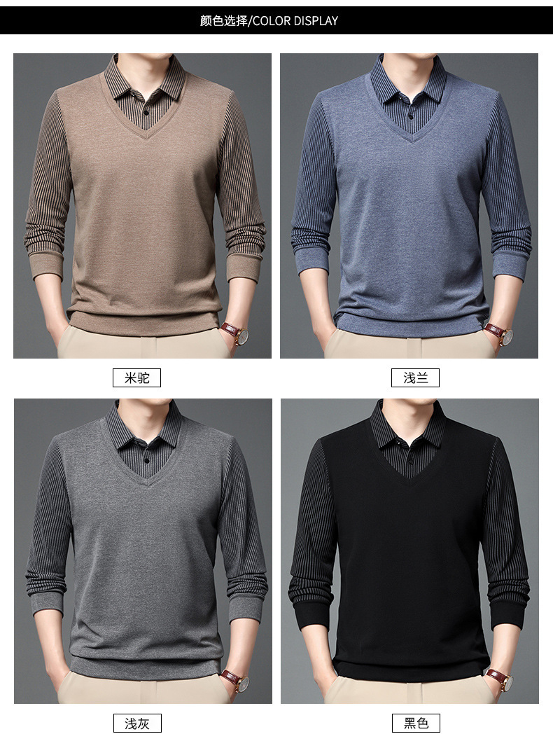 양면 양털 남성용 긴팔 스웨터 가짜 투피스 셔츠 칼라 아빠의 가을 탑 양털 샌딩 아우터웨어 베이스스토어 가기