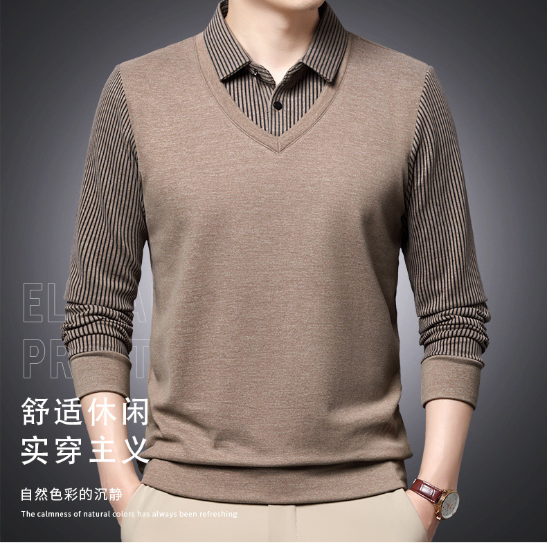 양면 양털 남성용 긴팔 스웨터 가짜 투피스 셔츠 칼라 아빠의 가을 탑 양털 샌딩 아우터웨어 베이스