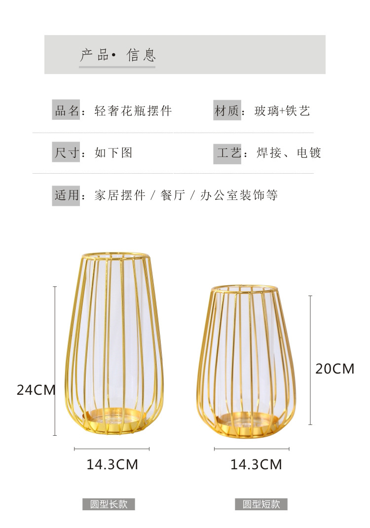 인터넷 유명한 철 예술 공예 유리 꽃 도금 장식품 홈 데스크탑 거실 수경 용기 물 저장 꽃병스토어 가기