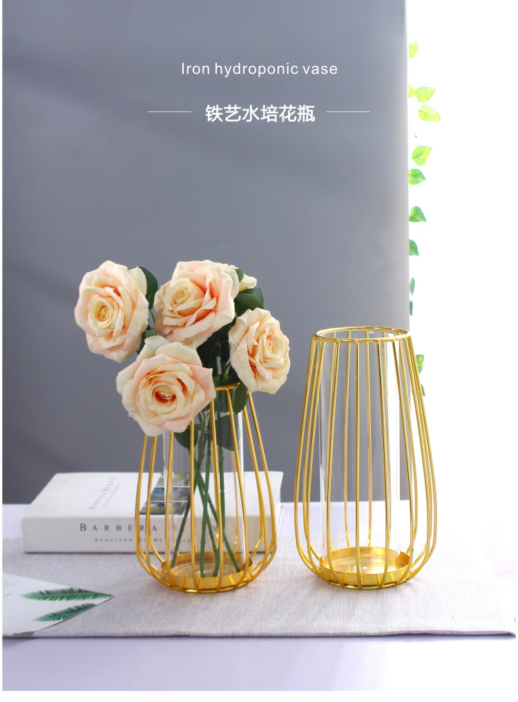 인터넷 유명한 철 예술 공예 유리 꽃 도금 장식품 홈 데스크탑 거실 수경 용기 물 저장 꽃병