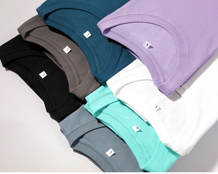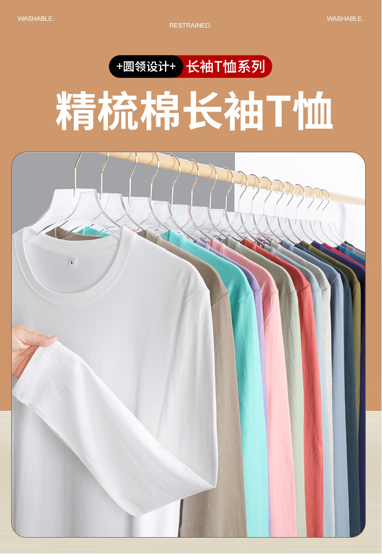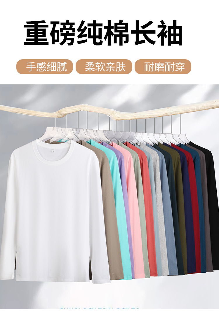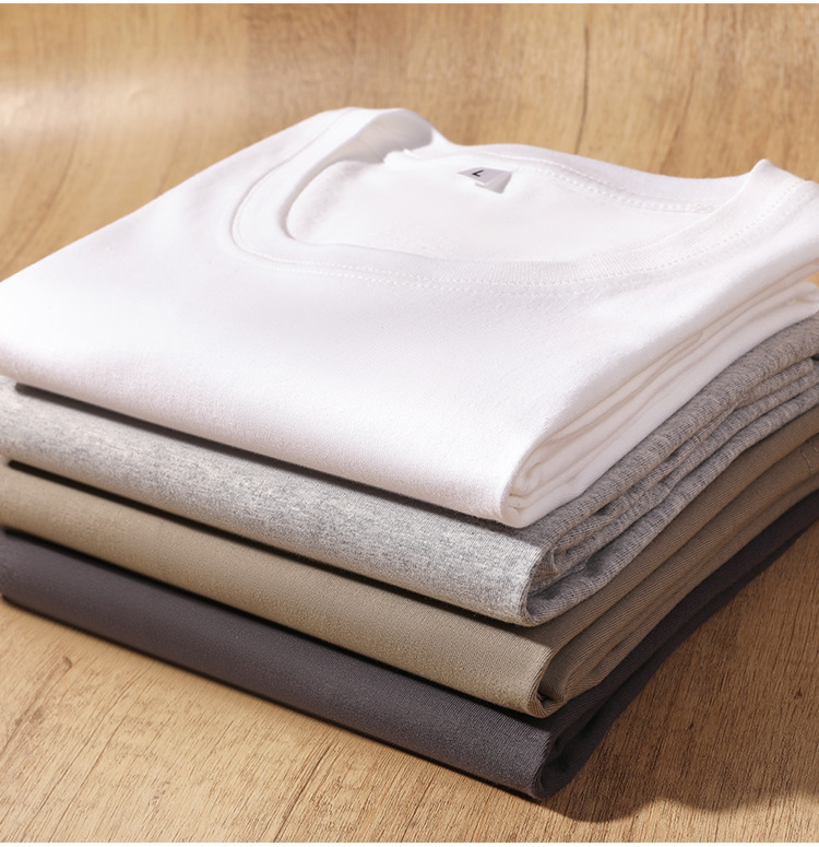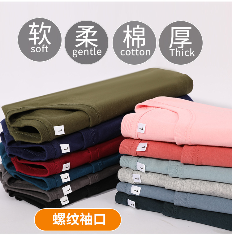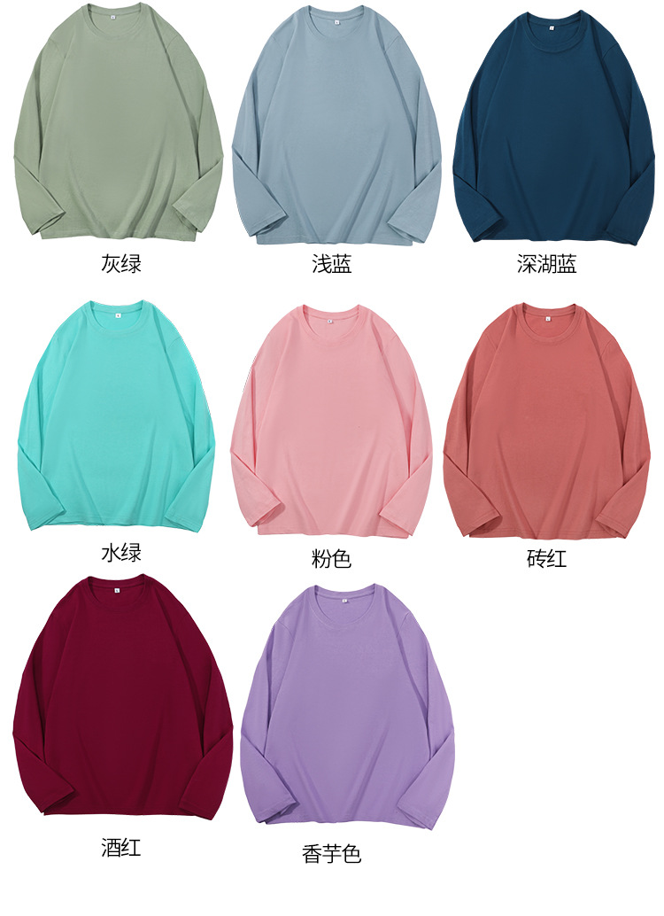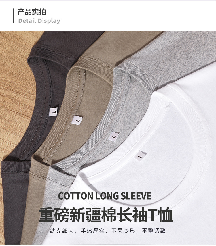 봄과 가을 180g 면 긴 소매 티셔츠 남성용 느슨한 크루넥 느슨한 단색 탑 가을 옷 기본 셔츠스토어 가기
