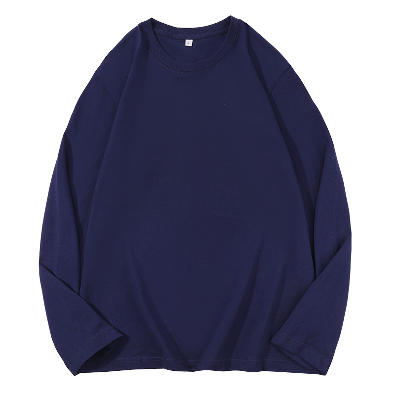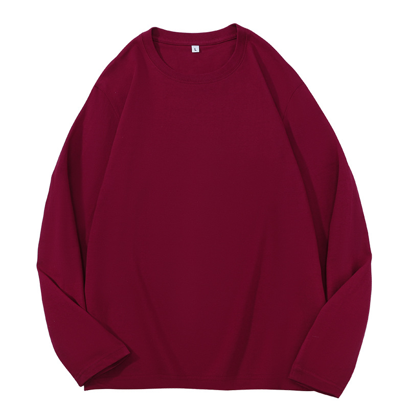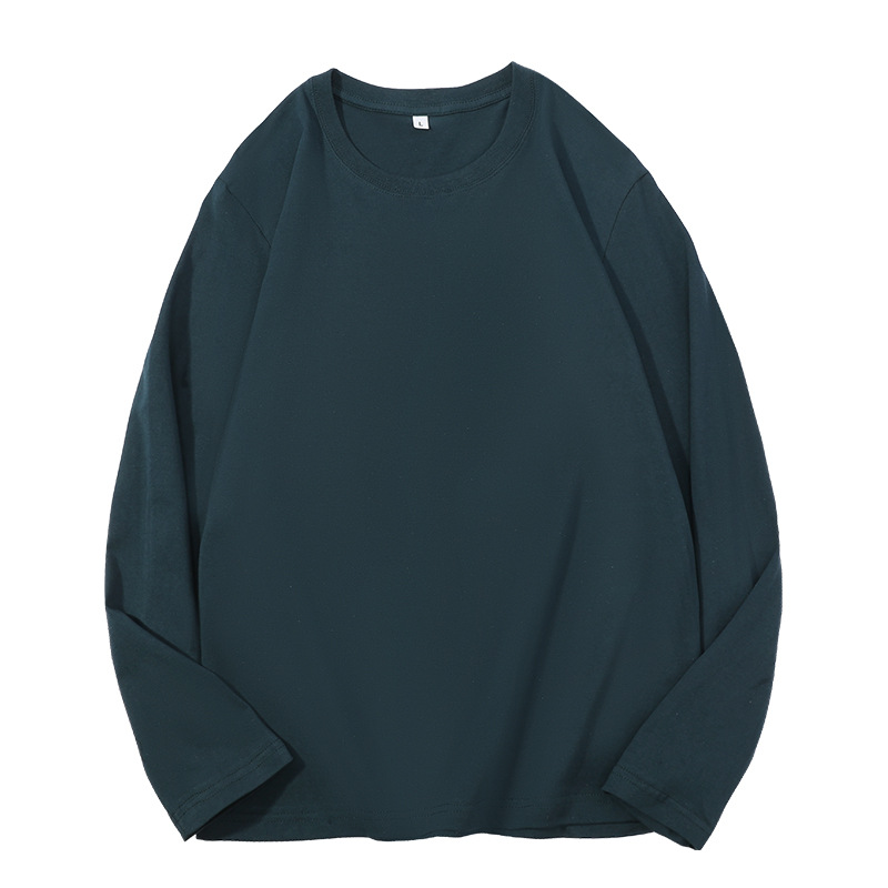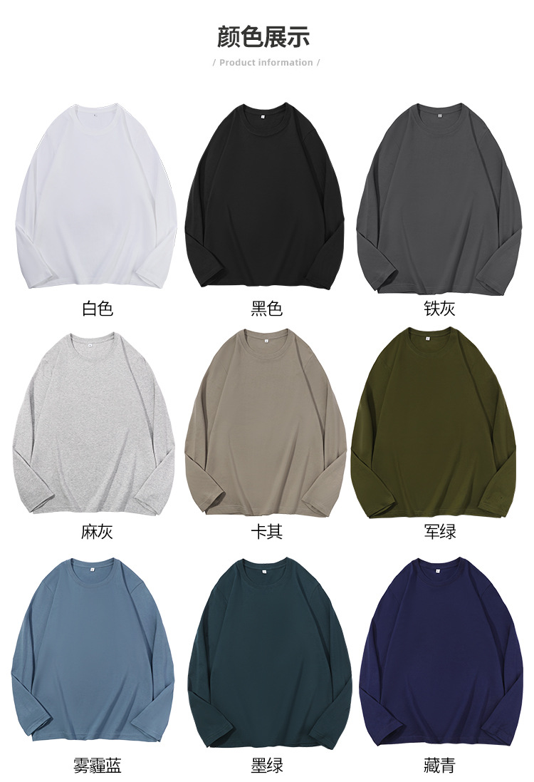 봄과 가을 180g 면 긴 소매 티셔츠 남성용 느슨한 크루넥 느슨한 단색 탑 가을 옷 기본 셔츠
