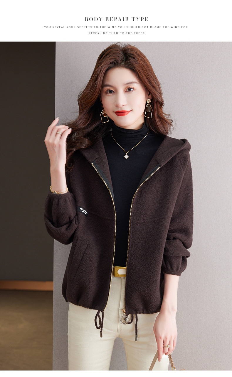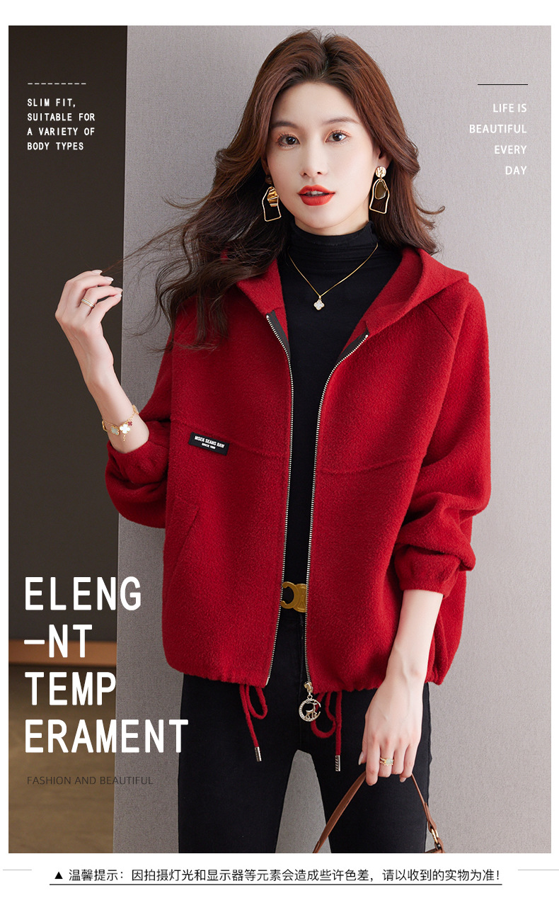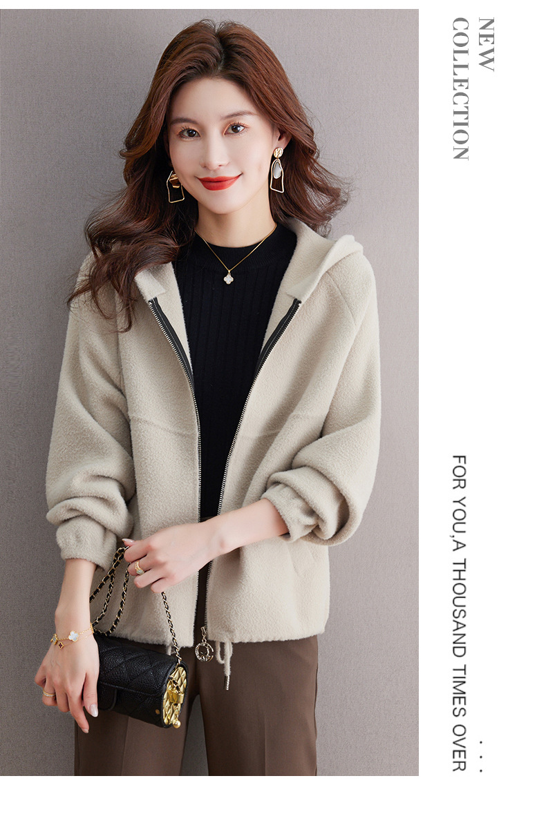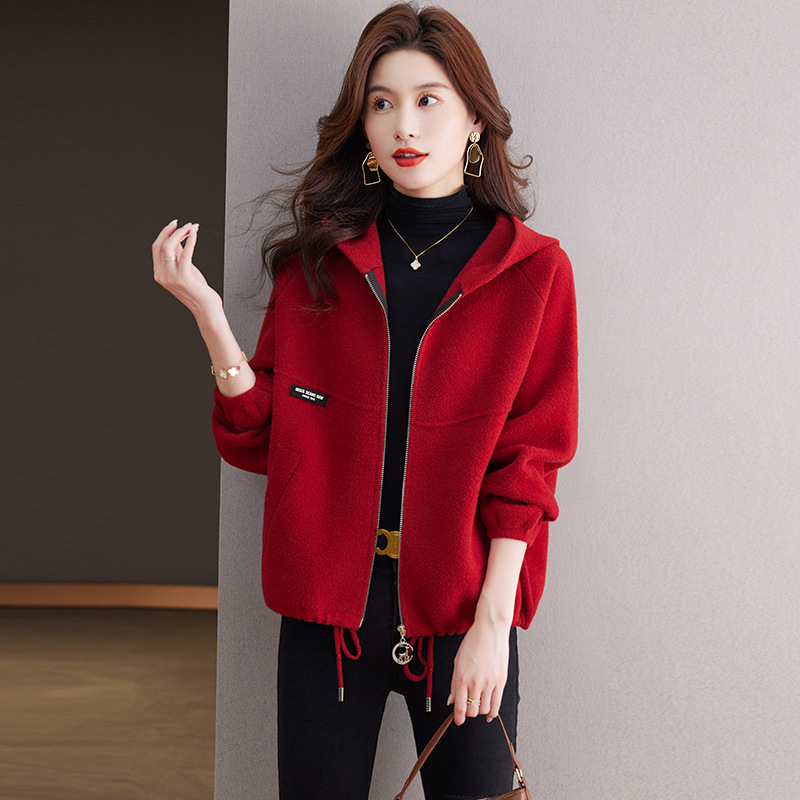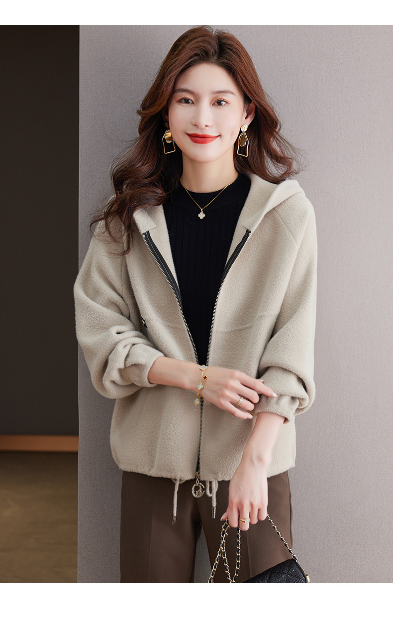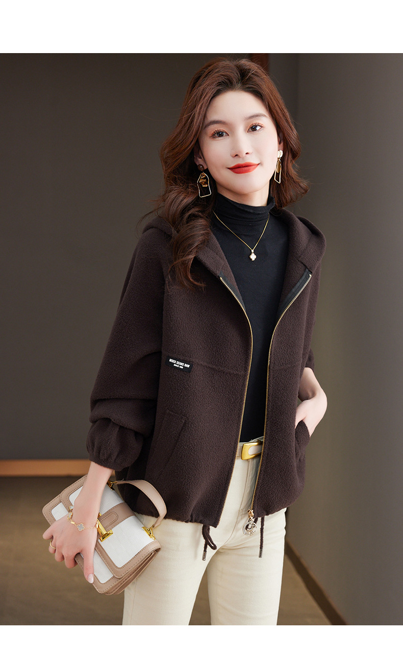여성 후드 모직 코트 봄과 가을 느슨한 가을 2023 새로운 짧은 스몰 탑 카디건 재킷