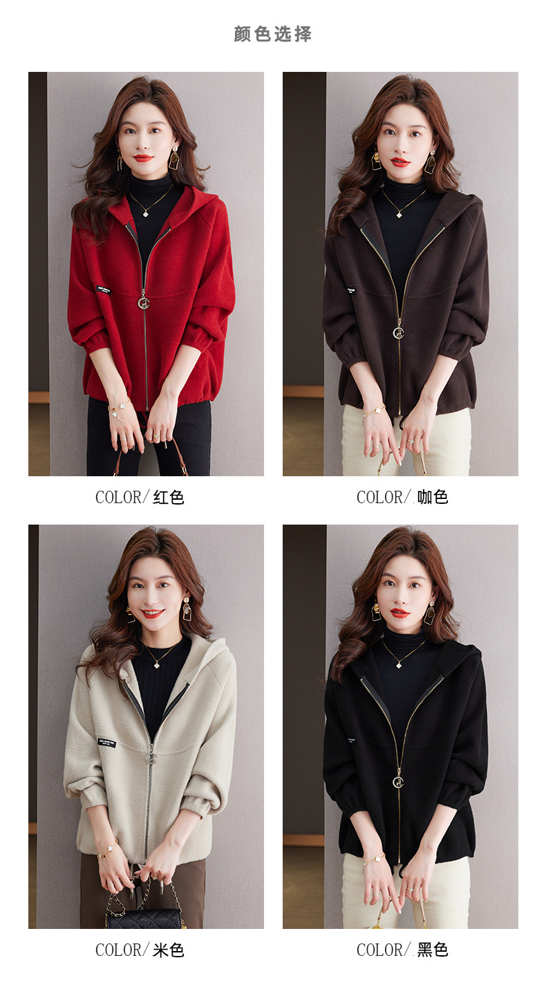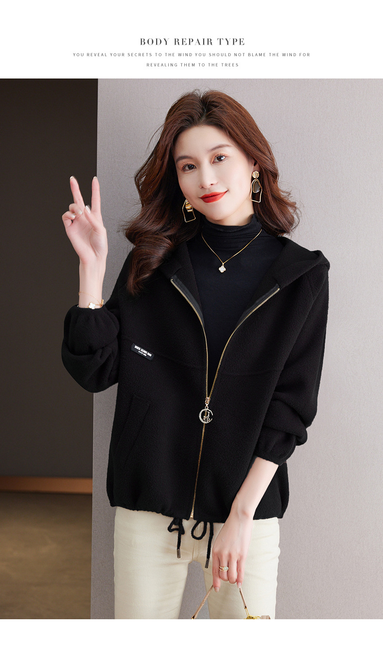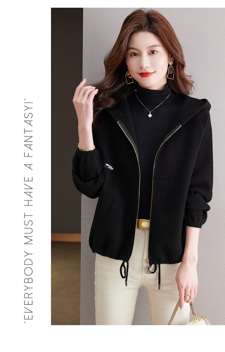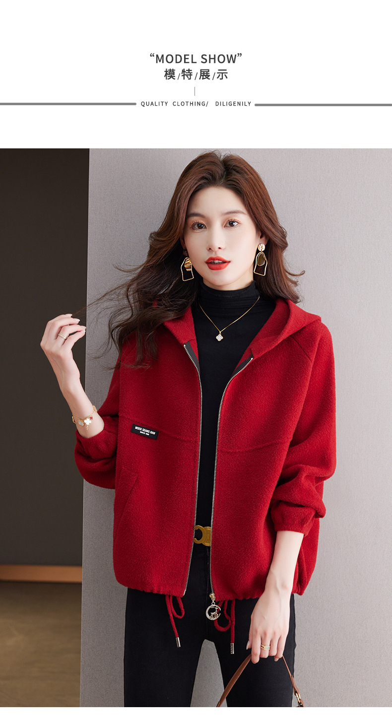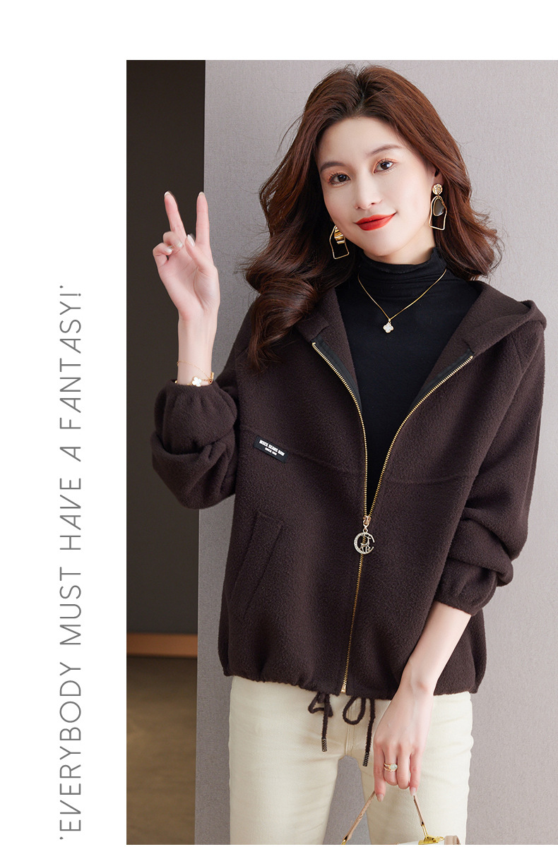 여성 후드 모직 코트 봄과 가을 느슨한 가을 2023 새로운 짧은 스몰 탑 카디건 재킷