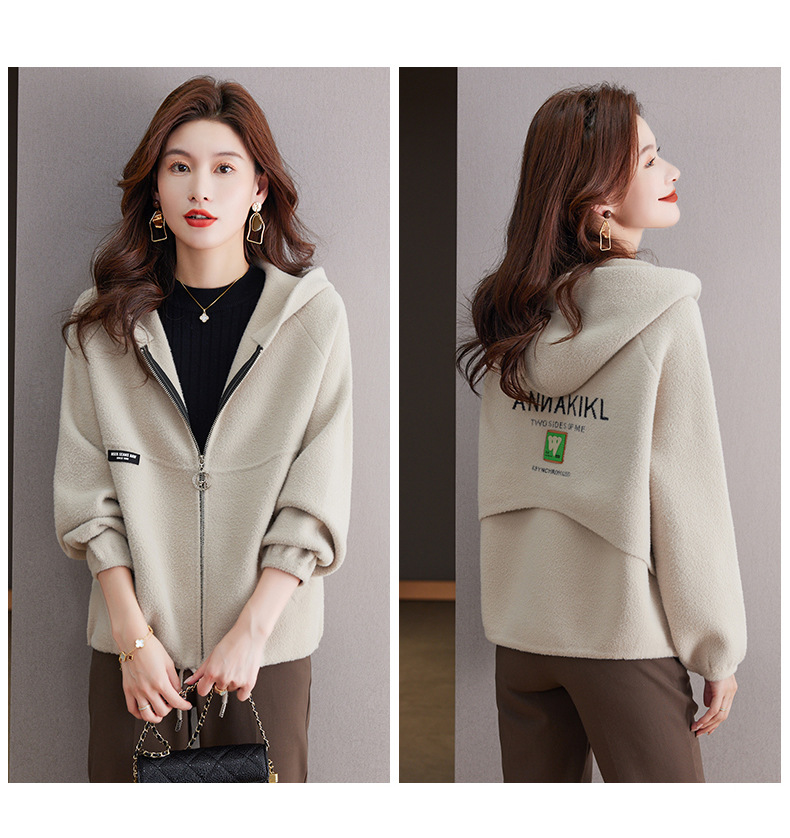 여성 후드 모직 코트 봄과 가을 느슨한 가을 2023 새로운 짧은 스몰 탑 카디건 재킷스토어 가기