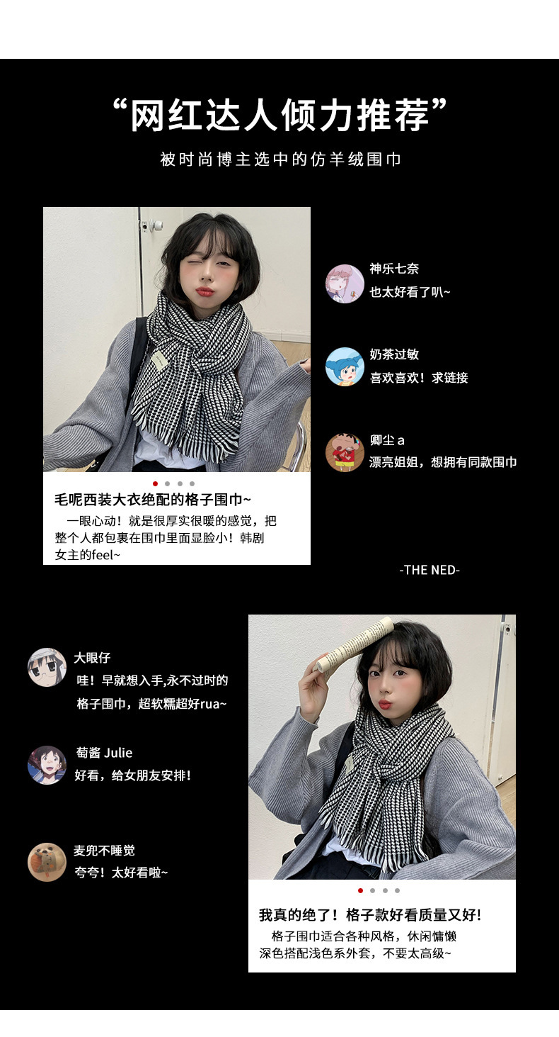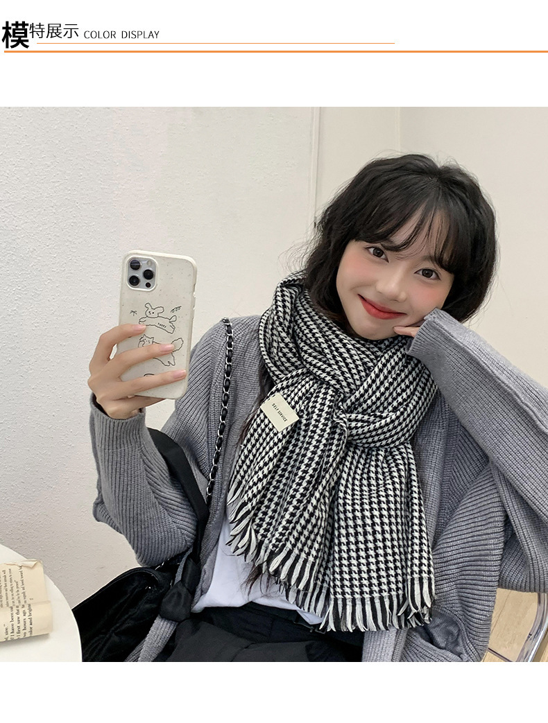 가을과 겨울 고급 Houndstooth 스카프 여성용 따뜻한 숄 학생의 모든 매치 모조 캐시미어 스카프 일본과 한국 스타일
