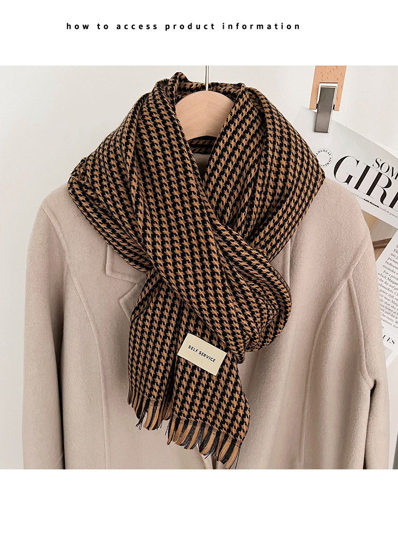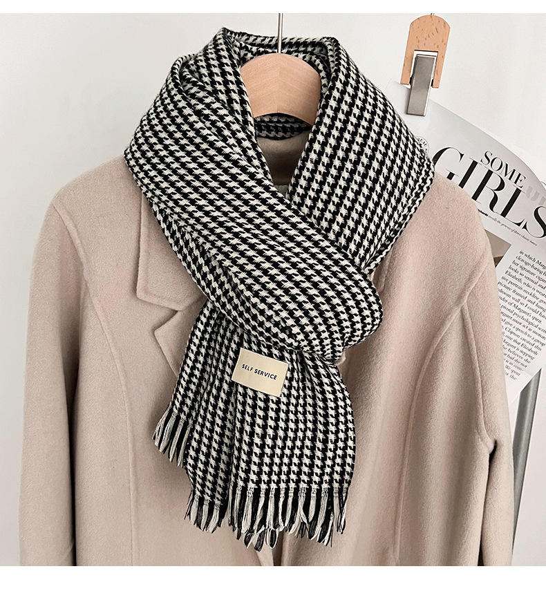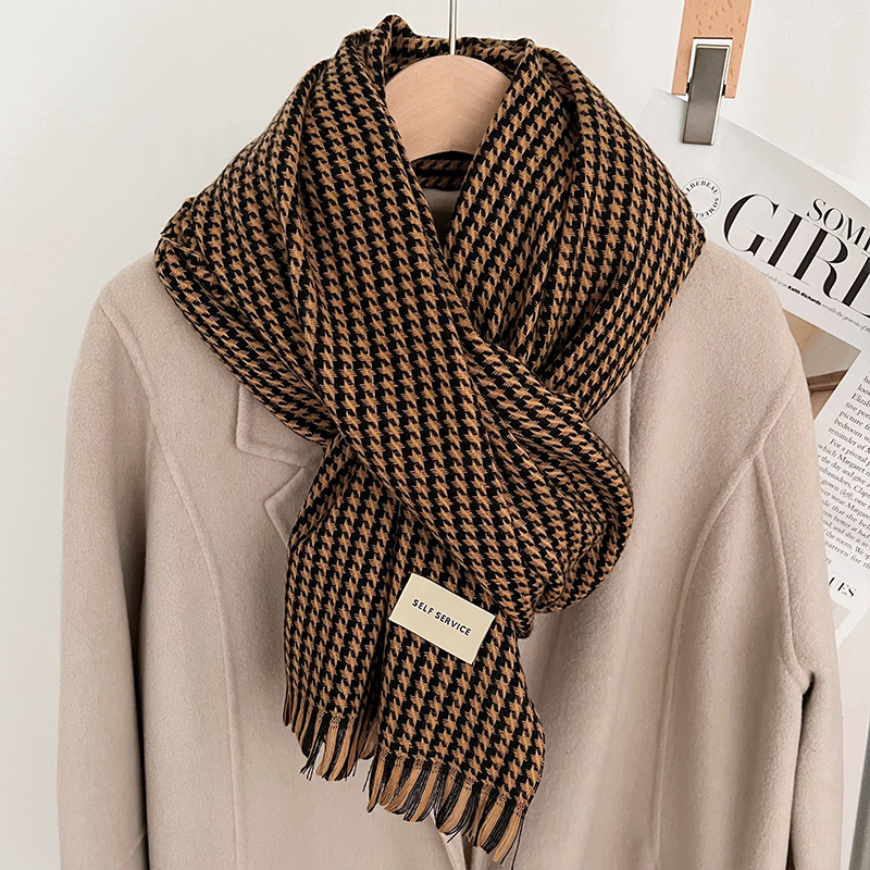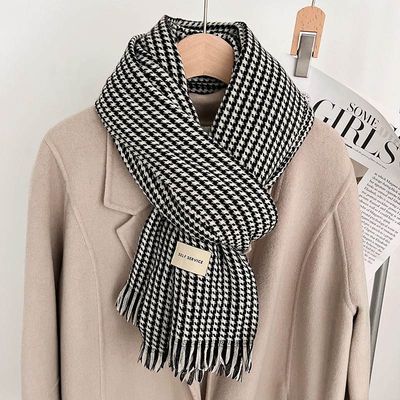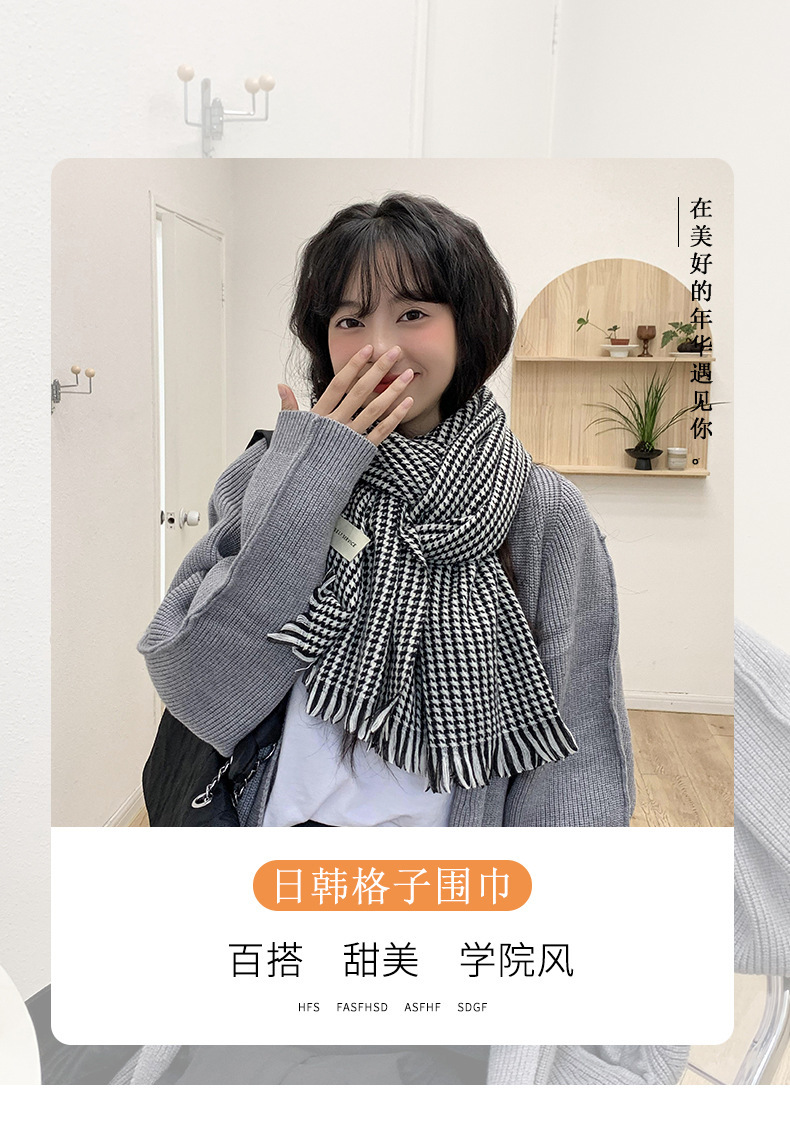 가을과 겨울 고급 Houndstooth 스카프 여성용 따뜻한 숄 학생의 모든 매치 모조 캐시미어 스카프 일본과 한국 스타일스토어 가기