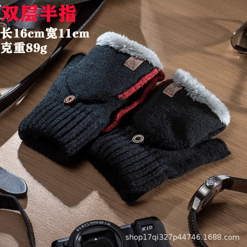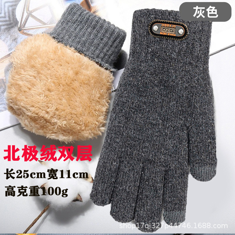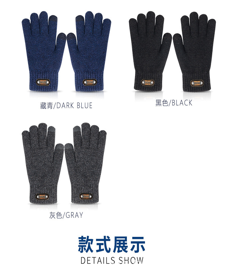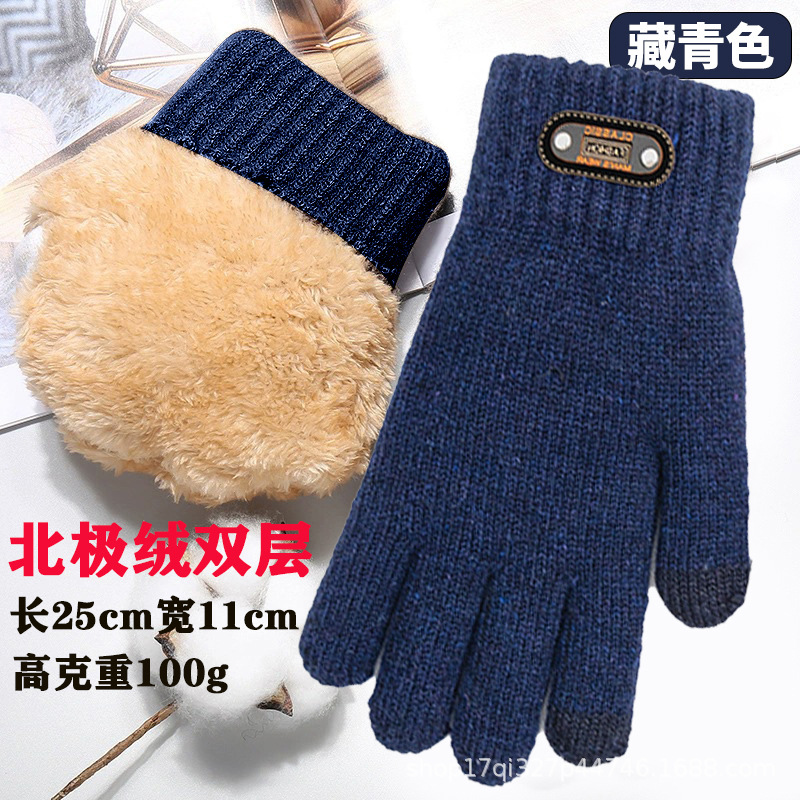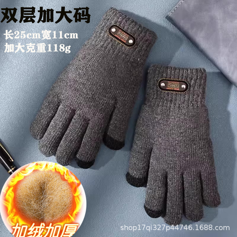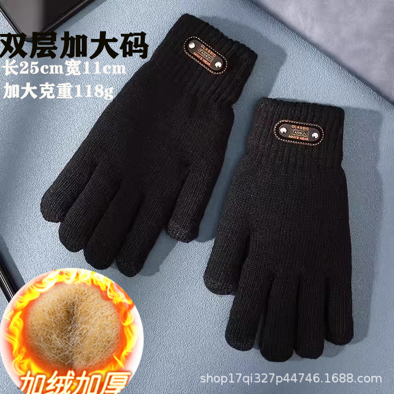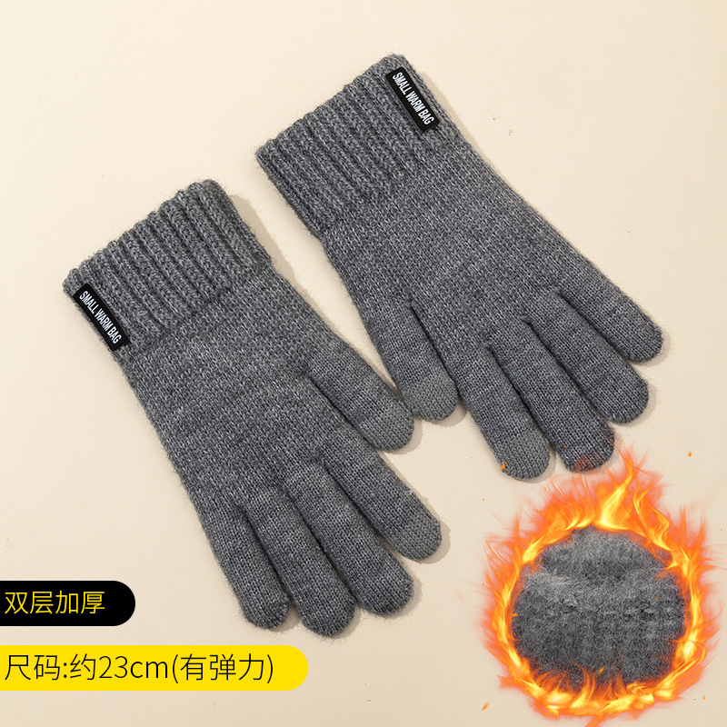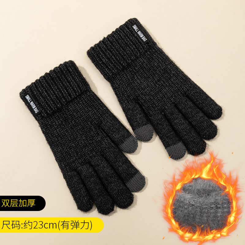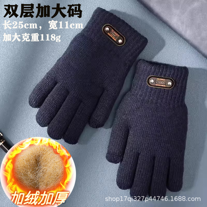 터치 스크린 장갑 남자의 겨울 따뜻한 방한 더블 레이어 기모 두꺼운 학생 니트 울 다섯 손가락 남자의 냉동 방지 운전스토어 가기